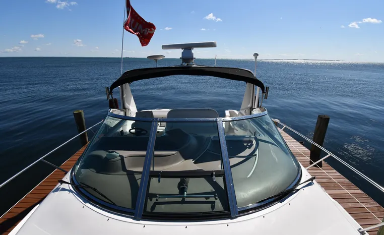 Freshwater / Great Lakes boat since new this vessel features Twin MerCruiser 496-MAG H.O. 425-hp Gas Engine's (Note 1047 total boat hours & 450-hours on re-power.) Notable features include but are not limited to the following: Air-Conditioning & Heat (2-Zones), (2) Heads (Vacuflush) w/Vanity/Sink/Shower (Stall-Shower in Forward Head), Central Vacuum, Westerbeke Generator (419-hrs), Windlass Anchor w/Forward Pedal Controls, Raytheon Electronics Package (VHF Marine Radio, Radar, GPS/Chartplotter, Autopilot, etc.), NEWER Canvas Package (Cockpit Mooring Cover, Forward & Aft Bimini's w/Full Isin-Glass Surround & Slant-Back Rear), Cockpit Wet Bar w/Sink/Ice-Maker, Snap-in Snap-out Cockpit Carpeting, Upgraded Bluetooth Sound System w/iPod/MP3-Connection (Note Upgraded Speakers), and MUCH more!