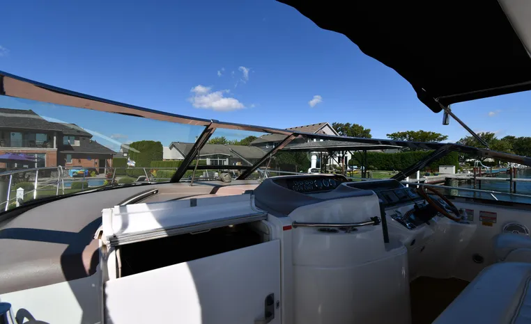 Freshwater / Great Lakes boat since new this vessel features Twin MerCruiser 496-MAG H.O. 425-hp Gas Engine's (Note 1047 total boat hours & 450-hours on re-power.) Notable features include but are not limited to the following: Air-Conditioning & Heat (2-Zones), (2) Heads (Vacuflush) w/Vanity/Sink/Shower (Stall-Shower in Forward Head), Central Vacuum, Westerbeke Generator (419-hrs), Windlass Anchor w/Forward Pedal Controls, Raytheon Electronics Package (VHF Marine Radio, Radar, GPS/Chartplotter, Autopilot, etc.), NEWER Canvas Package (Cockpit Mooring Cover, Forward & Aft Bimini's w/Full Isin-Glass Surround & Slant-Back Rear), Cockpit Wet Bar w/Sink/Ice-Maker, Snap-in Snap-out Cockpit Carpeting, Upgraded Bluetooth Sound System w/iPod/MP3-Connection (Note Upgraded Speakers), and MUCH more!