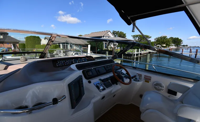 Freshwater / Great Lakes boat since new this vessel features Twin MerCruiser 496-MAG H.O. 425-hp Gas Engine's (Note 1047 total boat hours & 450-hours on re-power.) Notable features include but are not limited to the following: Air-Conditioning & Heat (2-Zones), (2) Heads (Vacuflush) w/Vanity/Sink/Shower (Stall-Shower in Forward Head), Central Vacuum, Westerbeke Generator (419-hrs), Windlass Anchor w/Forward Pedal Controls, Raytheon Electronics Package (VHF Marine Radio, Radar, GPS/Chartplotter, Autopilot, etc.), NEWER Canvas Package (Cockpit Mooring Cover, Forward & Aft Bimini's w/Full Isin-Glass Surround & Slant-Back Rear), Cockpit Wet Bar w/Sink/Ice-Maker, Snap-in Snap-out Cockpit Carpeting, Upgraded Bluetooth Sound System w/iPod/MP3-Connection (Note Upgraded Speakers), and MUCH more!