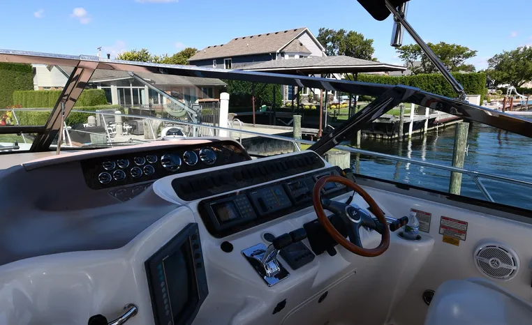 Freshwater / Great Lakes boat since new this vessel features Twin MerCruiser 496-MAG H.O. 425-hp Gas Engine's (Note 1047 total boat hours & 450-hours on re-power.) Notable features include but are not limited to the following: Air-Conditioning & Heat (2-Zones), (2) Heads (Vacuflush) w/Vanity/Sink/Shower (Stall-Shower in Forward Head), Central Vacuum, Westerbeke Generator (419-hrs), Windlass Anchor w/Forward Pedal Controls, Raytheon Electronics Package (VHF Marine Radio, Radar, GPS/Chartplotter, Autopilot, etc.), NEWER Canvas Package (Cockpit Mooring Cover, Forward & Aft Bimini's w/Full Isin-Glass Surround & Slant-Back Rear), Cockpit Wet Bar w/Sink/Ice-Maker, Snap-in Snap-out Cockpit Carpeting, Upgraded Bluetooth Sound System w/iPod/MP3-Connection (Note Upgraded Speakers), and MUCH more!
