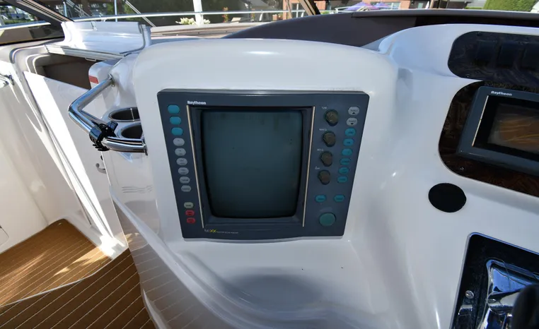 Freshwater / Great Lakes boat since new this vessel features Twin MerCruiser 496-MAG H.O. 425-hp Gas Engine's (Note 1047 total boat hours & 450-hours on re-power.) Notable features include but are not limited to the following: Air-Conditioning & Heat (2-Zones), (2) Heads (Vacuflush) w/Vanity/Sink/Shower (Stall-Shower in Forward Head), Central Vacuum, Westerbeke Generator (419-hrs), Windlass Anchor w/Forward Pedal Controls, Raytheon Electronics Package (VHF Marine Radio, Radar, GPS/Chartplotter, Autopilot, etc.), NEWER Canvas Package (Cockpit Mooring Cover, Forward & Aft Bimini's w/Full Isin-Glass Surround & Slant-Back Rear), Cockpit Wet Bar w/Sink/Ice-Maker, Snap-in Snap-out Cockpit Carpeting, Upgraded Bluetooth Sound System w/iPod/MP3-Connection (Note Upgraded Speakers), and MUCH more!