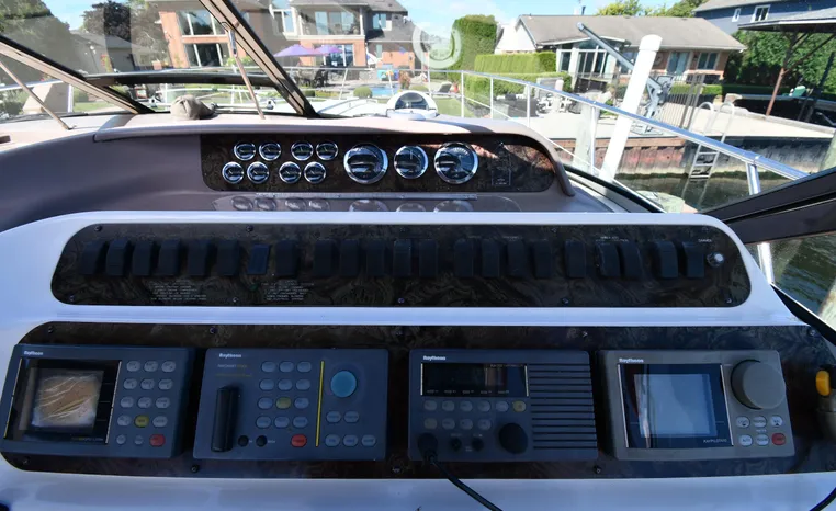 Freshwater / Great Lakes boat since new this vessel features Twin MerCruiser 496-MAG H.O. 425-hp Gas Engine's (Note 1047 total boat hours & 450-hours on re-power.) Notable features include but are not limited to the following: Air-Conditioning & Heat (2-Zones), (2) Heads (Vacuflush) w/Vanity/Sink/Shower (Stall-Shower in Forward Head), Central Vacuum, Westerbeke Generator (419-hrs), Windlass Anchor w/Forward Pedal Controls, Raytheon Electronics Package (VHF Marine Radio, Radar, GPS/Chartplotter, Autopilot, etc.), NEWER Canvas Package (Cockpit Mooring Cover, Forward & Aft Bimini's w/Full Isin-Glass Surround & Slant-Back Rear), Cockpit Wet Bar w/Sink/Ice-Maker, Snap-in Snap-out Cockpit Carpeting, Upgraded Bluetooth Sound System w/iPod/MP3-Connection (Note Upgraded Speakers), and MUCH more!