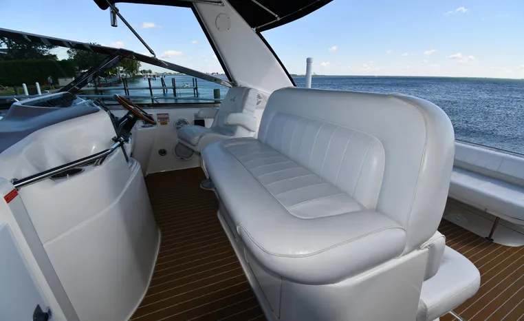 Freshwater / Great Lakes boat since new this vessel features Twin MerCruiser 496-MAG H.O. 425-hp Gas Engine's (Note 1047 total boat hours & 450-hours on re-power.) Notable features include but are not limited to the following: Air-Conditioning & Heat (2-Zones), (2) Heads (Vacuflush) w/Vanity/Sink/Shower (Stall-Shower in Forward Head), Central Vacuum, Westerbeke Generator (419-hrs), Windlass Anchor w/Forward Pedal Controls, Raytheon Electronics Package (VHF Marine Radio, Radar, GPS/Chartplotter, Autopilot, etc.), NEWER Canvas Package (Cockpit Mooring Cover, Forward & Aft Bimini's w/Full Isin-Glass Surround & Slant-Back Rear), Cockpit Wet Bar w/Sink/Ice-Maker, Snap-in Snap-out Cockpit Carpeting, Upgraded Bluetooth Sound System w/iPod/MP3-Connection (Note Upgraded Speakers), and MUCH more!