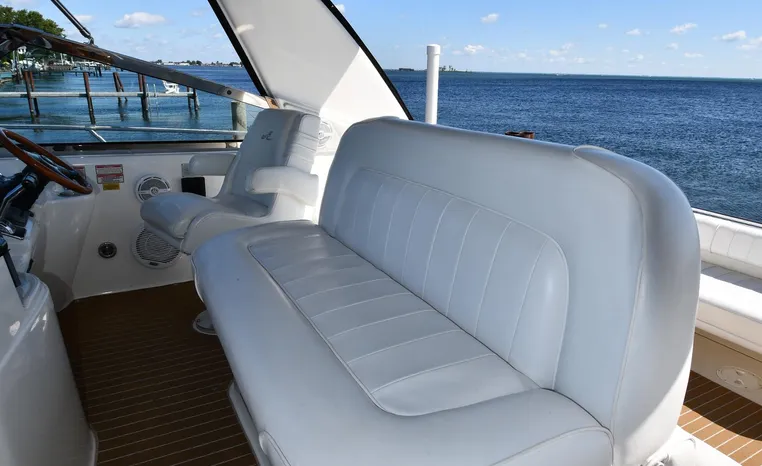 Freshwater / Great Lakes boat since new this vessel features Twin MerCruiser 496-MAG H.O. 425-hp Gas Engine's (Note 1047 total boat hours & 450-hours on re-power.) Notable features include but are not limited to the following: Air-Conditioning & Heat (2-Zones), (2) Heads (Vacuflush) w/Vanity/Sink/Shower (Stall-Shower in Forward Head), Central Vacuum, Westerbeke Generator (419-hrs), Windlass Anchor w/Forward Pedal Controls, Raytheon Electronics Package (VHF Marine Radio, Radar, GPS/Chartplotter, Autopilot, etc.), NEWER Canvas Package (Cockpit Mooring Cover, Forward & Aft Bimini's w/Full Isin-Glass Surround & Slant-Back Rear), Cockpit Wet Bar w/Sink/Ice-Maker, Snap-in Snap-out Cockpit Carpeting, Upgraded Bluetooth Sound System w/iPod/MP3-Connection (Note Upgraded Speakers), and MUCH more!