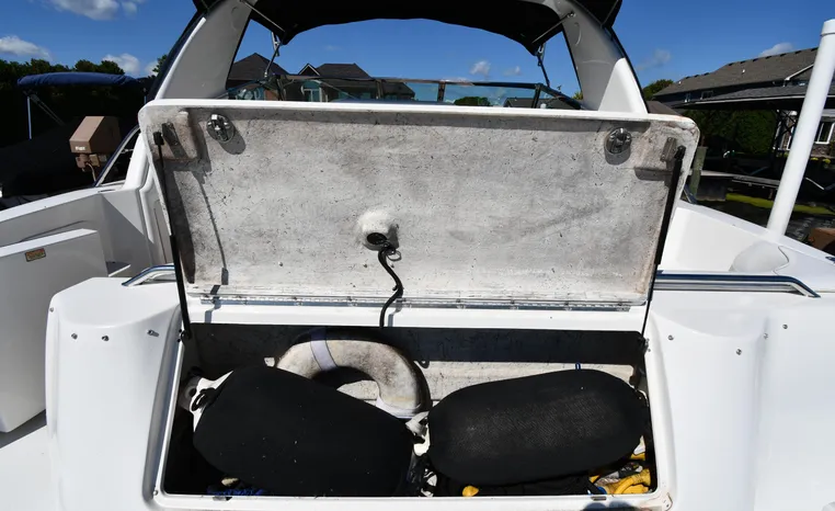 Freshwater / Great Lakes boat since new this vessel features Twin MerCruiser 496-MAG H.O. 425-hp Gas Engine's (Note 1047 total boat hours & 450-hours on re-power.) Notable features include but are not limited to the following: Air-Conditioning & Heat (2-Zones), (2) Heads (Vacuflush) w/Vanity/Sink/Shower (Stall-Shower in Forward Head), Central Vacuum, Westerbeke Generator (419-hrs), Windlass Anchor w/Forward Pedal Controls, Raytheon Electronics Package (VHF Marine Radio, Radar, GPS/Chartplotter, Autopilot, etc.), NEWER Canvas Package (Cockpit Mooring Cover, Forward & Aft Bimini's w/Full Isin-Glass Surround & Slant-Back Rear), Cockpit Wet Bar w/Sink/Ice-Maker, Snap-in Snap-out Cockpit Carpeting, Upgraded Bluetooth Sound System w/iPod/MP3-Connection (Note Upgraded Speakers), and MUCH more!