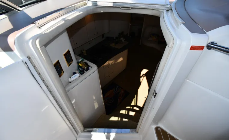 Freshwater / Great Lakes boat since new this vessel features Twin MerCruiser 496-MAG H.O. 425-hp Gas Engine's (Note 1047 total boat hours & 450-hours on re-power.) Notable features include but are not limited to the following: Air-Conditioning & Heat (2-Zones), (2) Heads (Vacuflush) w/Vanity/Sink/Shower (Stall-Shower in Forward Head), Central Vacuum, Westerbeke Generator (419-hrs), Windlass Anchor w/Forward Pedal Controls, Raytheon Electronics Package (VHF Marine Radio, Radar, GPS/Chartplotter, Autopilot, etc.), NEWER Canvas Package (Cockpit Mooring Cover, Forward & Aft Bimini's w/Full Isin-Glass Surround & Slant-Back Rear), Cockpit Wet Bar w/Sink/Ice-Maker, Snap-in Snap-out Cockpit Carpeting, Upgraded Bluetooth Sound System w/iPod/MP3-Connection (Note Upgraded Speakers), and MUCH more!
