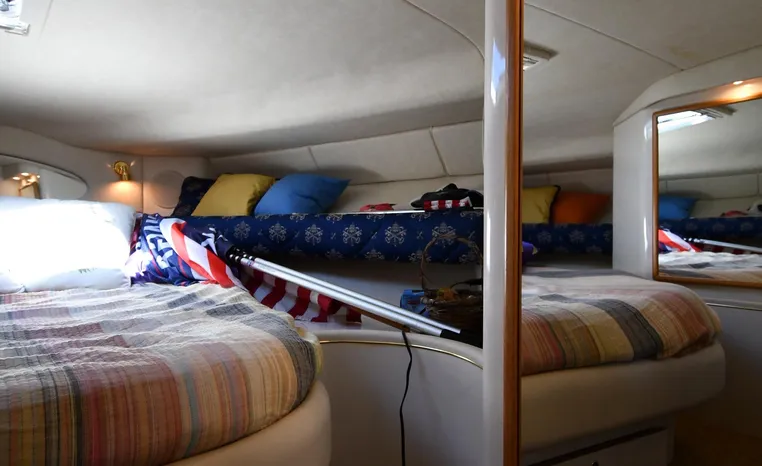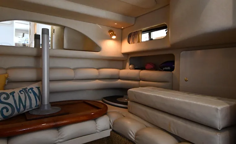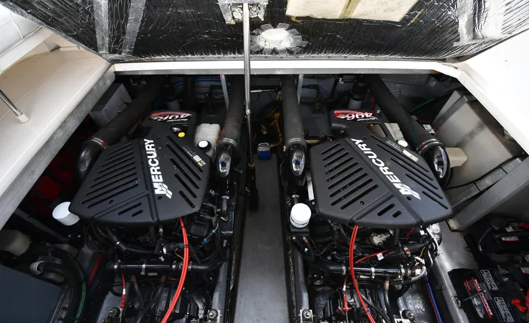 Broker Notes: Note newer refrigerator, newer heads, newer cabin carpeting, upgraded sound system, newer full canvas package, custom aft deck table...Seller invested in re-power w/MerCruiser 496-MAG (High-Output) 425-hp Gas Engine's (this one moves!) CLEAN boat & highly recommended by listing agent!
