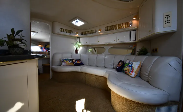 Freshwater / Great Lakes boat since new this vessel features Twin MerCruiser 496-MAG H.O. 425-hp Gas Engine's (Note 1047 total boat hours & 450-hours on re-power.) Notable features include but are not limited to the following: Air-Conditioning & Heat (2-Zones), (2) Heads (Vacuflush) w/Vanity/Sink/Shower (Stall-Shower in Forward Head), Central Vacuum, Westerbeke Generator (419-hrs), Windlass Anchor w/Forward Pedal Controls, Raytheon Electronics Package (VHF Marine Radio, Radar, GPS/Chartplotter, Autopilot, etc.), NEWER Canvas Package (Cockpit Mooring Cover, Forward & Aft Bimini's w/Full Isin-Glass Surround & Slant-Back Rear), Cockpit Wet Bar w/Sink/Ice-Maker, Snap-in Snap-out Cockpit Carpeting, Upgraded Bluetooth Sound System w/iPod/MP3-Connection (Note Upgraded Speakers), and MUCH more!