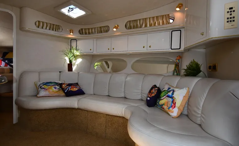 Freshwater / Great Lakes boat since new this vessel features Twin MerCruiser 496-MAG H.O. 425-hp Gas Engine's (Note 1047 total boat hours & 450-hours on re-power.) Notable features include but are not limited to the following: Air-Conditioning & Heat (2-Zones), (2) Heads (Vacuflush) w/Vanity/Sink/Shower (Stall-Shower in Forward Head), Central Vacuum, Westerbeke Generator (419-hrs), Windlass Anchor w/Forward Pedal Controls, Raytheon Electronics Package (VHF Marine Radio, Radar, GPS/Chartplotter, Autopilot, etc.), NEWER Canvas Package (Cockpit Mooring Cover, Forward & Aft Bimini's w/Full Isin-Glass Surround & Slant-Back Rear), Cockpit Wet Bar w/Sink/Ice-Maker, Snap-in Snap-out Cockpit Carpeting, Upgraded Bluetooth Sound System w/iPod/MP3-Connection (Note Upgraded Speakers), and MUCH more!