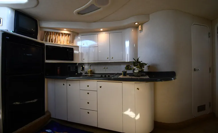 Freshwater / Great Lakes boat since new this vessel features Twin MerCruiser 496-MAG H.O. 425-hp Gas Engine's (Note 1047 total boat hours & 450-hours on re-power.) Notable features include but are not limited to the following: Air-Conditioning & Heat (2-Zones), (2) Heads (Vacuflush) w/Vanity/Sink/Shower (Stall-Shower in Forward Head), Central Vacuum, Westerbeke Generator (419-hrs), Windlass Anchor w/Forward Pedal Controls, Raytheon Electronics Package (VHF Marine Radio, Radar, GPS/Chartplotter, Autopilot, etc.), NEWER Canvas Package (Cockpit Mooring Cover, Forward & Aft Bimini's w/Full Isin-Glass Surround & Slant-Back Rear), Cockpit Wet Bar w/Sink/Ice-Maker, Snap-in Snap-out Cockpit Carpeting, Upgraded Bluetooth Sound System w/iPod/MP3-Connection (Note Upgraded Speakers), and MUCH more!