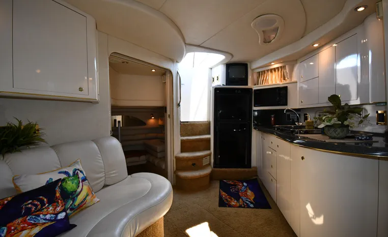 Freshwater / Great Lakes boat since new this vessel features Twin MerCruiser 496-MAG H.O. 425-hp Gas Engine's (Note 1047 total boat hours & 450-hours on re-power.) Notable features include but are not limited to the following: Air-Conditioning & Heat (2-Zones), (2) Heads (Vacuflush) w/Vanity/Sink/Shower (Stall-Shower in Forward Head), Central Vacuum, Westerbeke Generator (419-hrs), Windlass Anchor w/Forward Pedal Controls, Raytheon Electronics Package (VHF Marine Radio, Radar, GPS/Chartplotter, Autopilot, etc.), NEWER Canvas Package (Cockpit Mooring Cover, Forward & Aft Bimini's w/Full Isin-Glass Surround & Slant-Back Rear), Cockpit Wet Bar w/Sink/Ice-Maker, Snap-in Snap-out Cockpit Carpeting, Upgraded Bluetooth Sound System w/iPod/MP3-Connection (Note Upgraded Speakers), and MUCH more!