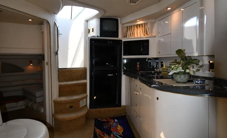 Freshwater / Great Lakes boat since new this vessel features Twin MerCruiser 496-MAG H.O. 425-hp Gas Engine's (Note 1047 total boat hours & 450-hours on re-power.) Notable features include but are not limited to the following: Air-Conditioning & Heat (2-Zones), (2) Heads (Vacuflush) w/Vanity/Sink/Shower (Stall-Shower in Forward Head), Central Vacuum, Westerbeke Generator (419-hrs), Windlass Anchor w/Forward Pedal Controls, Raytheon Electronics Package (VHF Marine Radio, Radar, GPS/Chartplotter, Autopilot, etc.), NEWER Canvas Package (Cockpit Mooring Cover, Forward & Aft Bimini's w/Full Isin-Glass Surround & Slant-Back Rear), Cockpit Wet Bar w/Sink/Ice-Maker, Snap-in Snap-out Cockpit Carpeting, Upgraded Bluetooth Sound System w/iPod/MP3-Connection (Note Upgraded Speakers), and MUCH more!