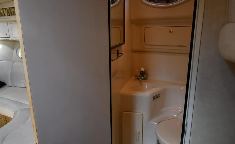 Freshwater / Great Lakes boat since new this vessel features Twin MerCruiser 496-MAG H.O. 425-hp Gas Engine's (Note 1047 total boat hours & 450-hours on re-power.) Notable features include but are not limited to the following: Air-Conditioning & Heat (2-Zones), (2) Heads (Vacuflush) w/Vanity/Sink/Shower (Stall-Shower in Forward Head), Central Vacuum, Westerbeke Generator (419-hrs), Windlass Anchor w/Forward Pedal Controls, Raytheon Electronics Package (VHF Marine Radio, Radar, GPS/Chartplotter, Autopilot, etc.), NEWER Canvas Package (Cockpit Mooring Cover, Forward & Aft Bimini's w/Full Isin-Glass Surround & Slant-Back Rear), Cockpit Wet Bar w/Sink/Ice-Maker, Snap-in Snap-out Cockpit Carpeting, Upgraded Bluetooth Sound System w/iPod/MP3-Connection (Note Upgraded Speakers), and MUCH more!
