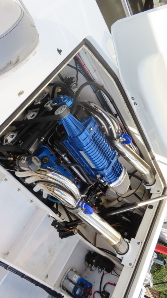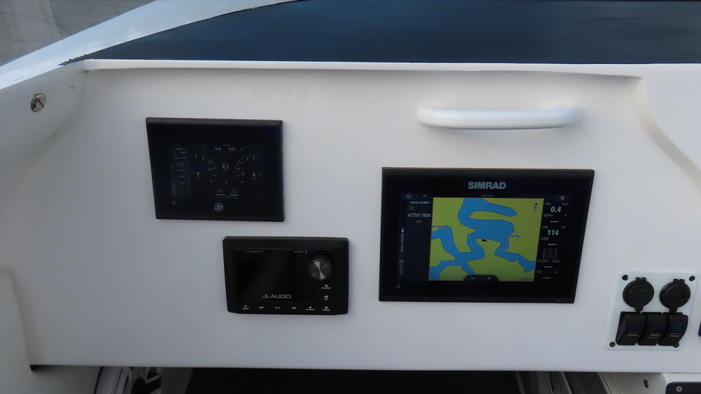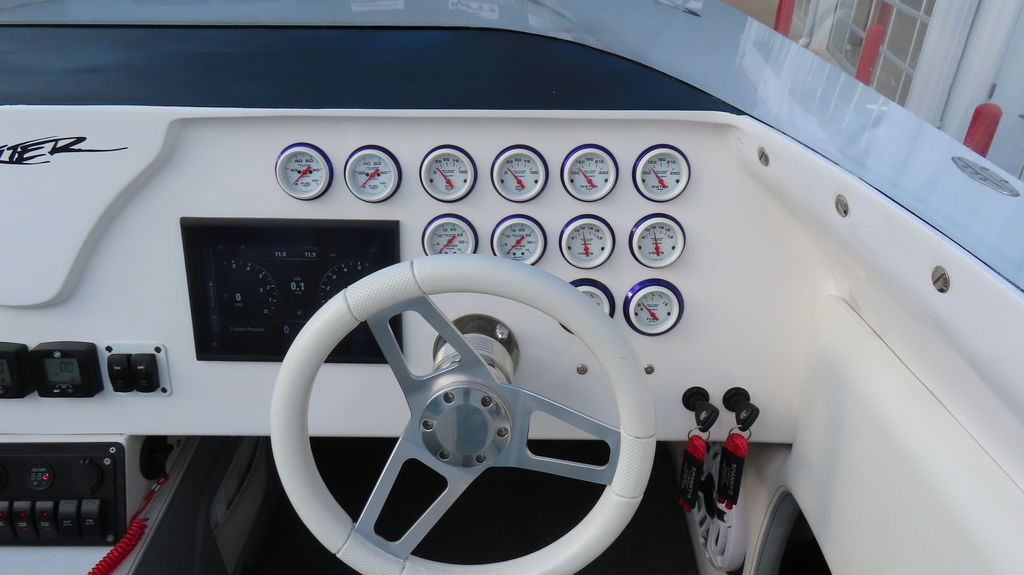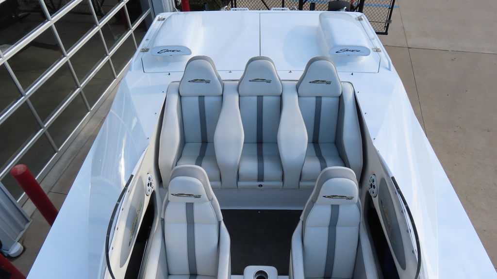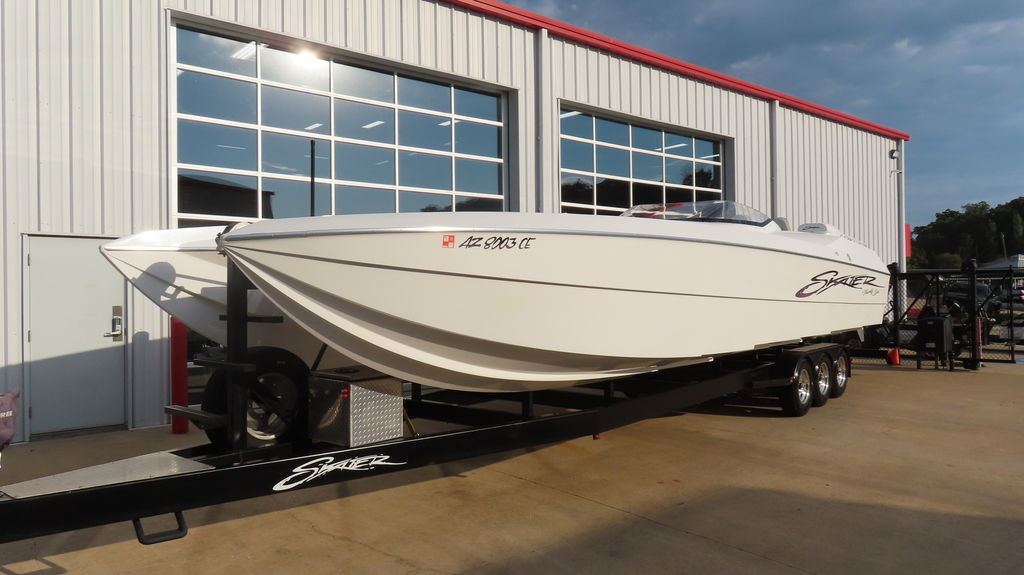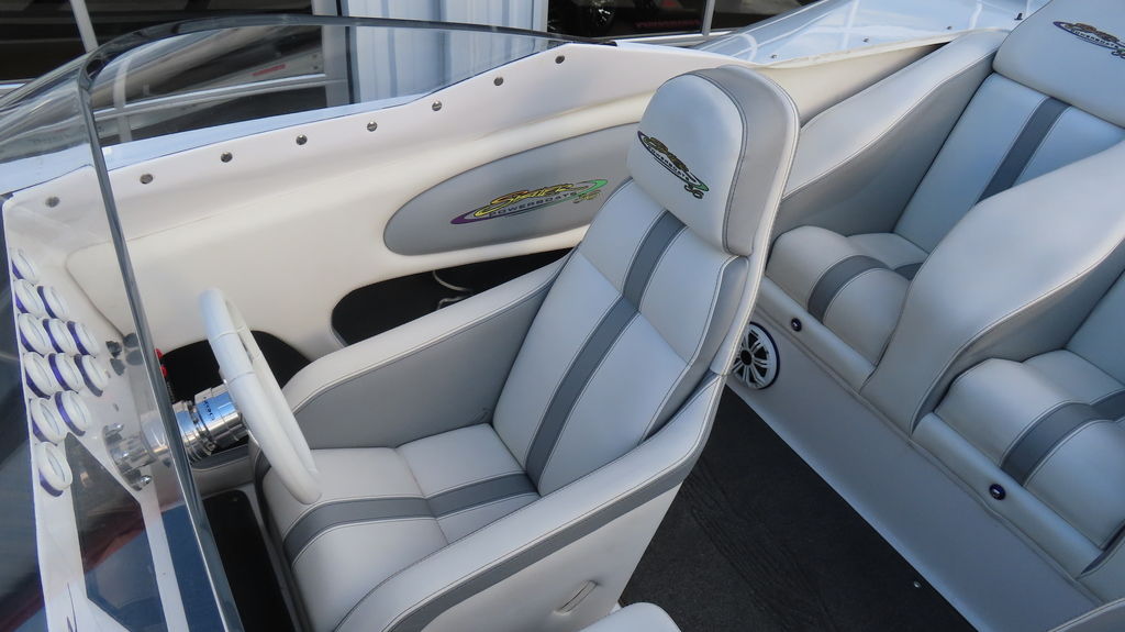 1997 Skater 36 Powered twin Mercury Racing 700s with stage 3 Whipples with 15 hours on Brand New Motors and M6 Drives rebuilt 25 hours ago, All recent services and $200K+ Refit/Rerigging done in the last year by PBC. 5-person cockpit with snap in carpet, Twin Mercury Vessel view displays, Simrad GPS Chart plotter, JL Audio Head Unit with JL and Kicker Speakers, Upgraded wrap-around windshield, Cockpit cover, and Triple axle trailer included!