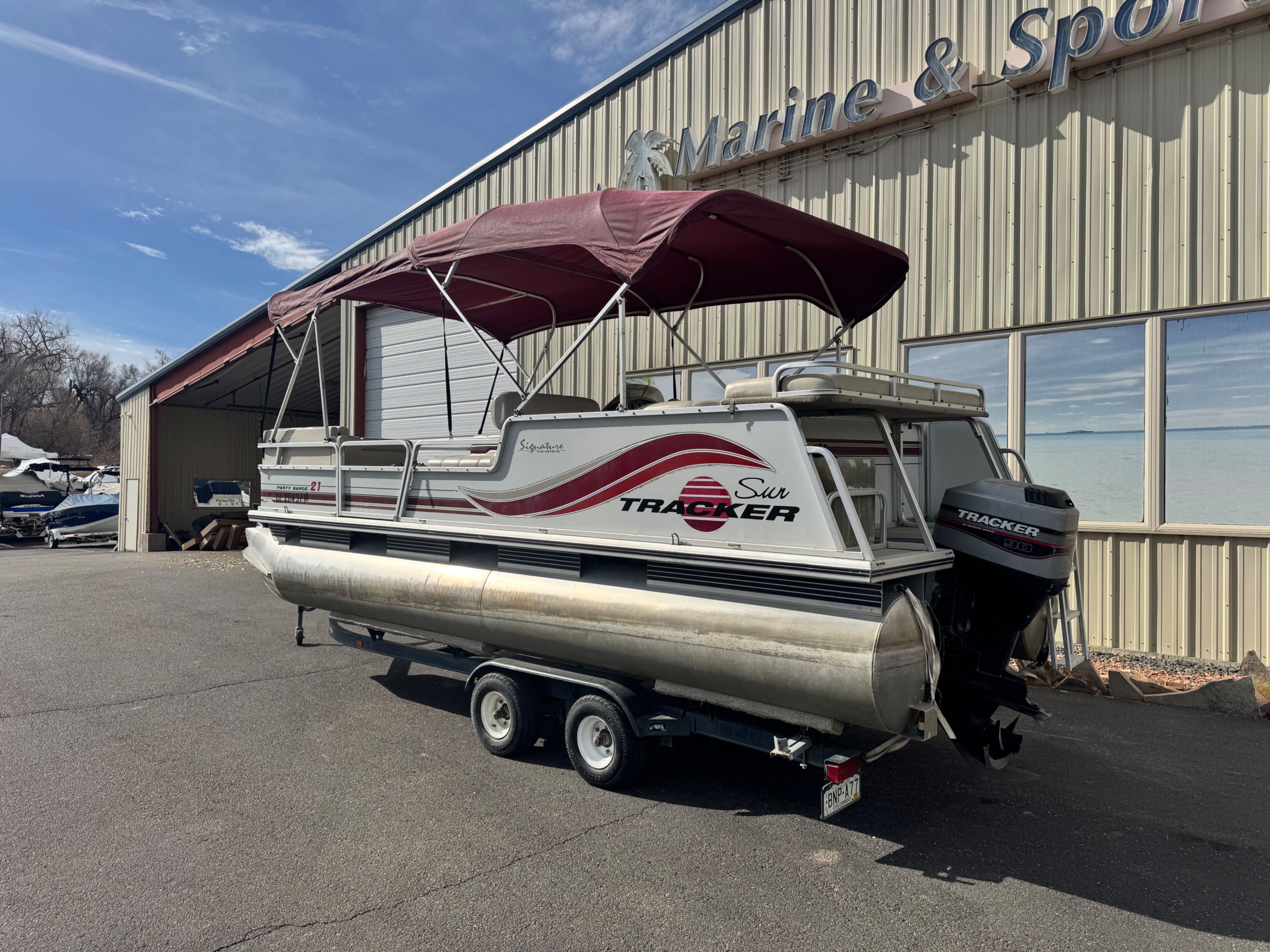1997 SunTracker 21 Party Barge Overview The 1997 SunTracker 21 Party Barge immaculately captures the essence of relaxation and fun on the water. A perfect choice for families and big groups who enjoy the thrill of water adventures, parties, and tranquil voyages. Design & Build Built with an aluminum hull, this pontoon boat offers long-lasting durability and an excellent balance of performance and comfort. Its expansive deck and multiple seating capacities make it an ideal space for entertaining aboard. Comfort & Accessibility The layout is spacious with an open floor plan, designed for the comfort of the passengers. With ample seating, lounge areas, a fully equipped helm station, and modern navigation equipment , every trip on this vessel is guaranteed to be an unforgettable experience. Engine & Performance The 1997 SunTracker 21 comes with a reliable outboard motor that boasts enough power for water sports and delivers a smooth, stable ride due to its premium, proven technology. Its fuel efficiency also makes it economical for long-range cruises. Additional Features The boat also boasts a built-in sound system for entertainment, a Bimini top for shade and weather protection, and plenty of storage compartments for all your gear and accessories. Experience the ultimate blend of comfort, enjoyment, and reliable performance with the 1997 SunTracker 21 Party Barge .