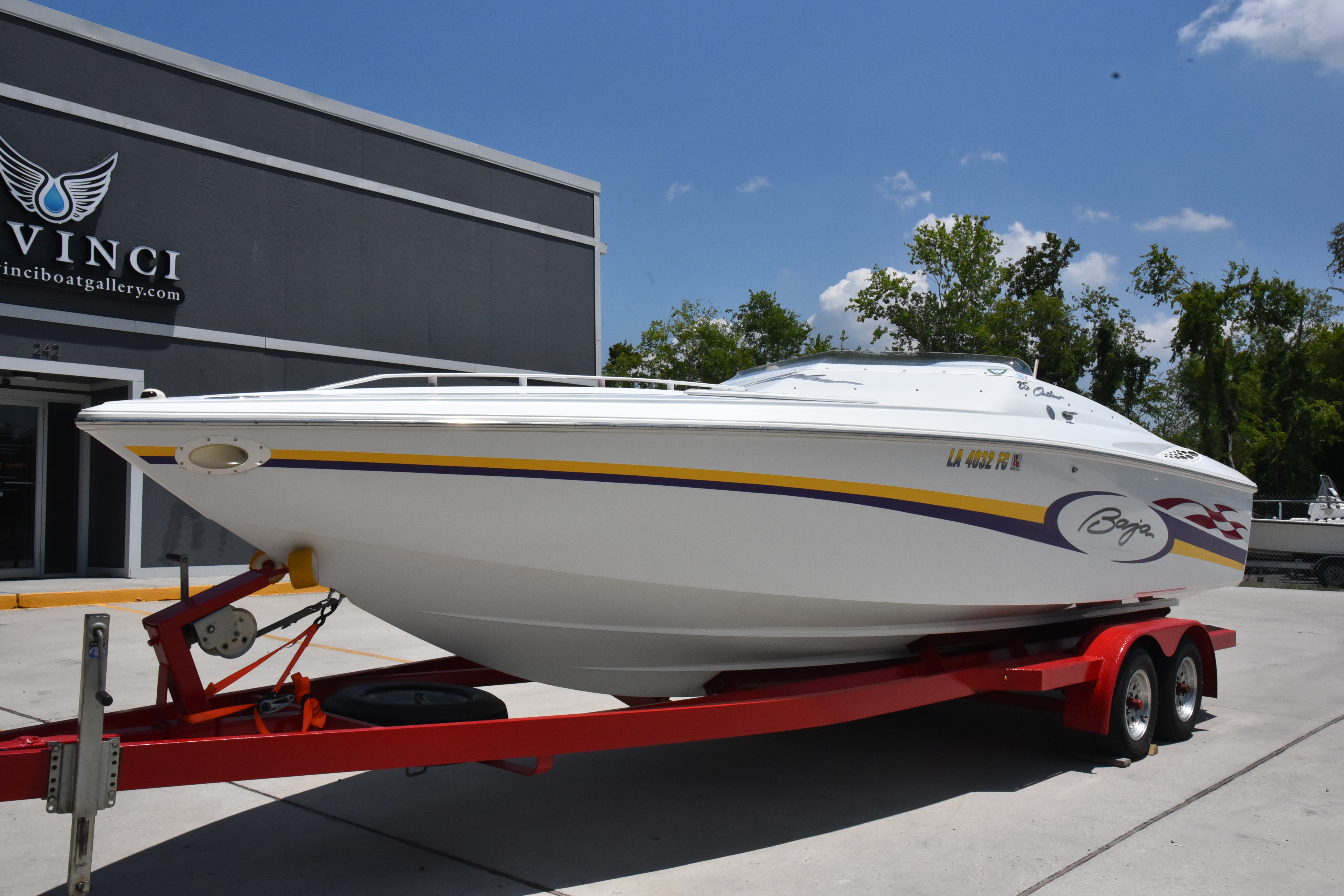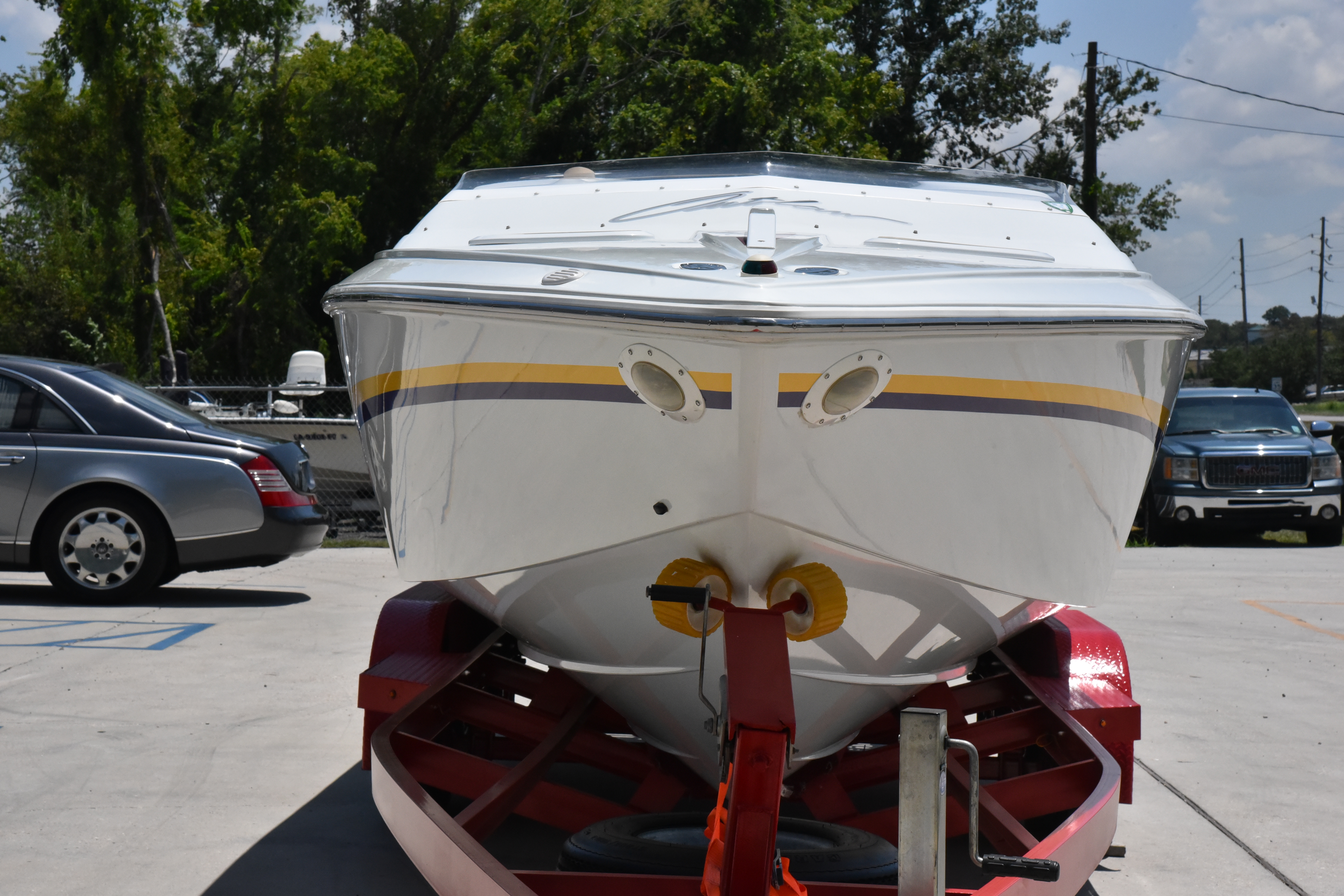 This inboard/outboard sports runabout is 25 feet long and weighs 4750 (pounds dry). This weight does not account for passengers, fuel, or gear. The beam of this craft is 98 inches.