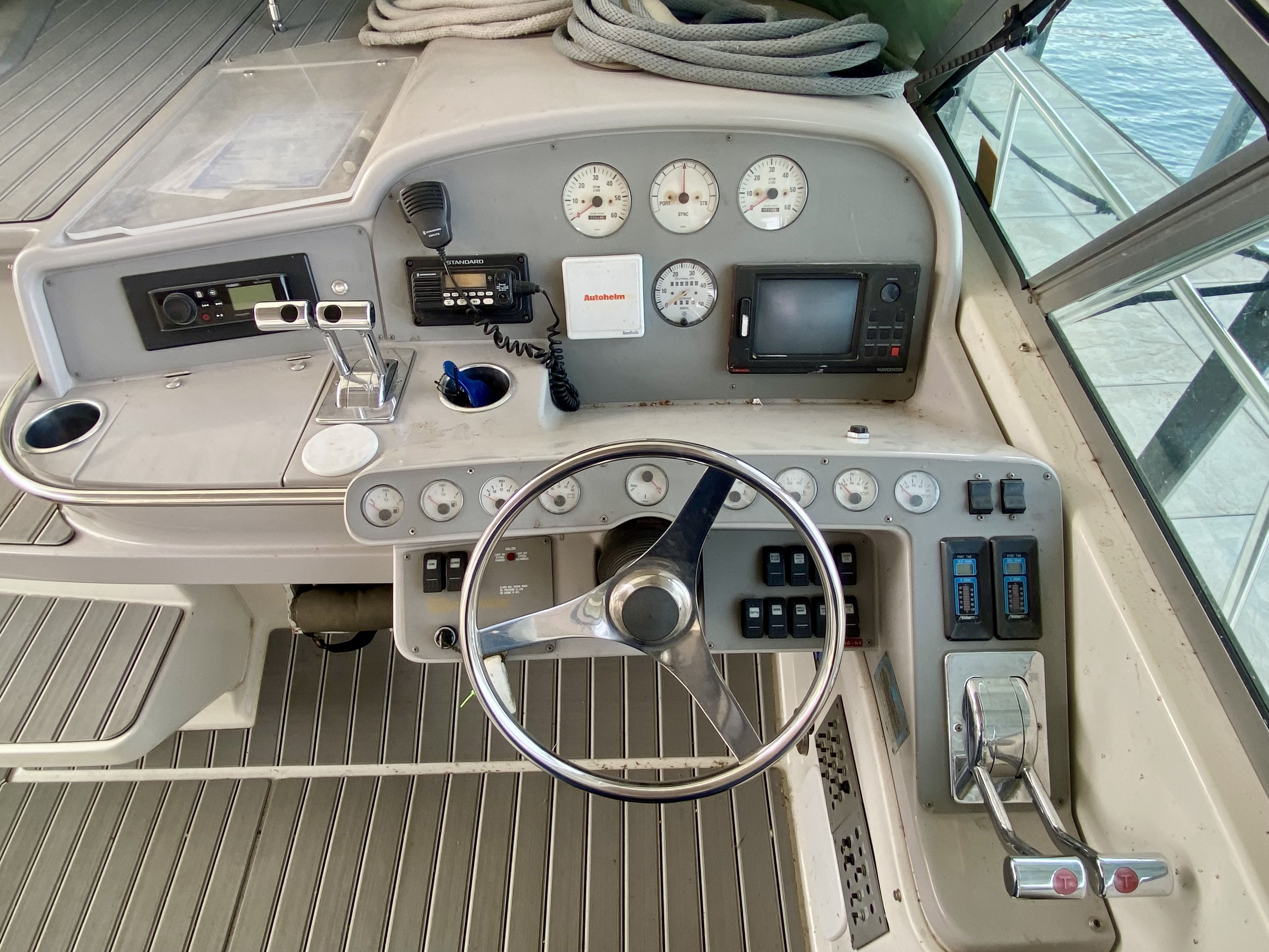 The Formula 41 PC is a well-engineered express cruiser with the precise handling and quality construction typical of Formula products. This is a big boat inside and out. The long foredeck and shapely profile make her a standout in any marina. The mid-cabin accommodations of the Formula 41 are impressive with staterooms fore, aft and a long salon with room for a crowd. There's a separate stall shower in the double-entry head, a big galley with plenty of counter space, full-size refrigerator, and excellent storage. Outside, the cockpit is arranged with a double-wide seat at helm, and u-shaped settee aft, wet bar and a walk-through windshield to access the windlass and forward sunpad. Call today for more details or to schedule viewing.