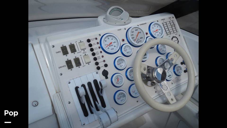 This is one of the more popular Fountains on the market, featuring a roomier cockpit between bolstered seats. Powered by twin Mercruiser 502 Magnum MPI inboard/outboard with 415 HP each.
