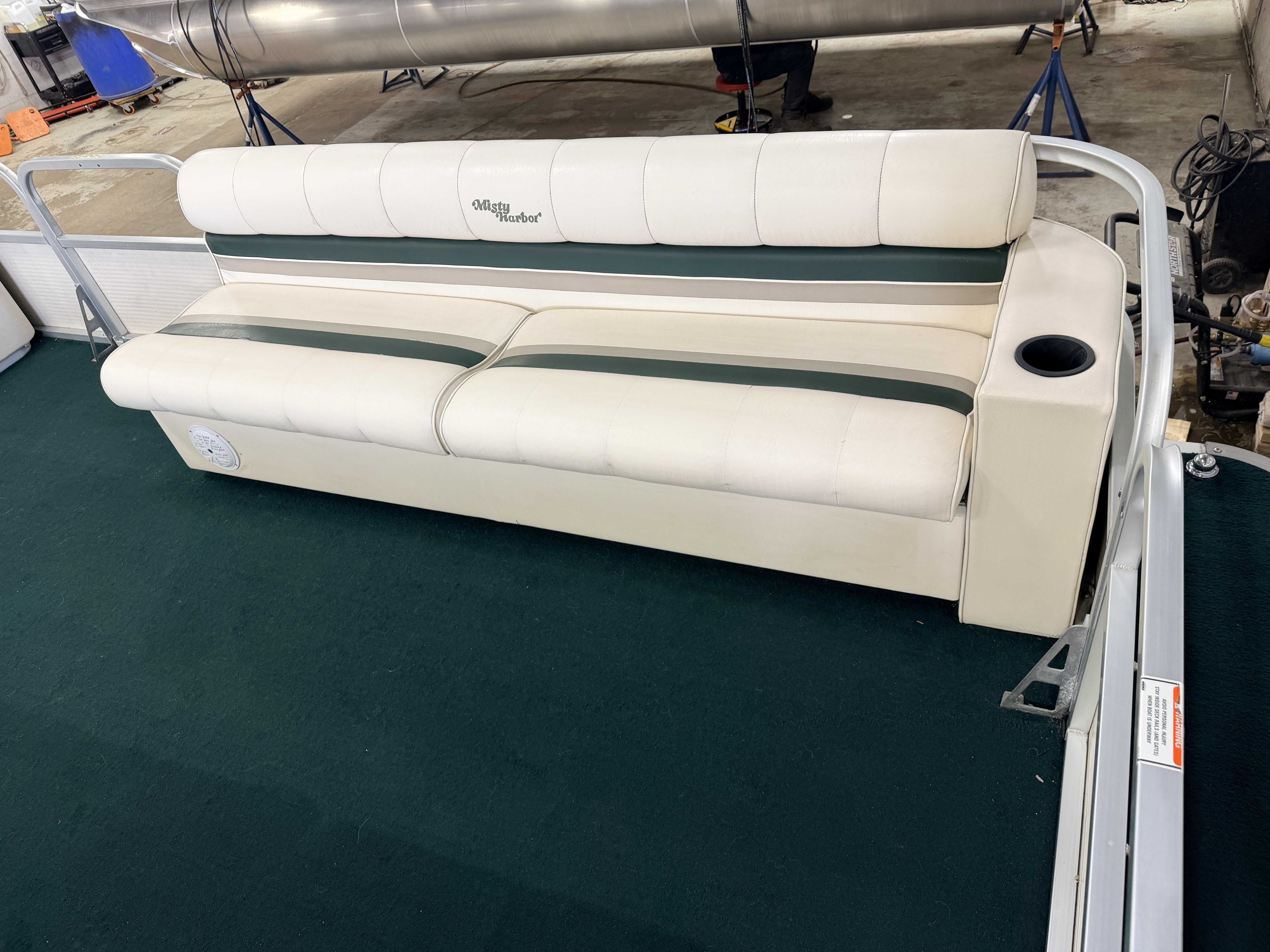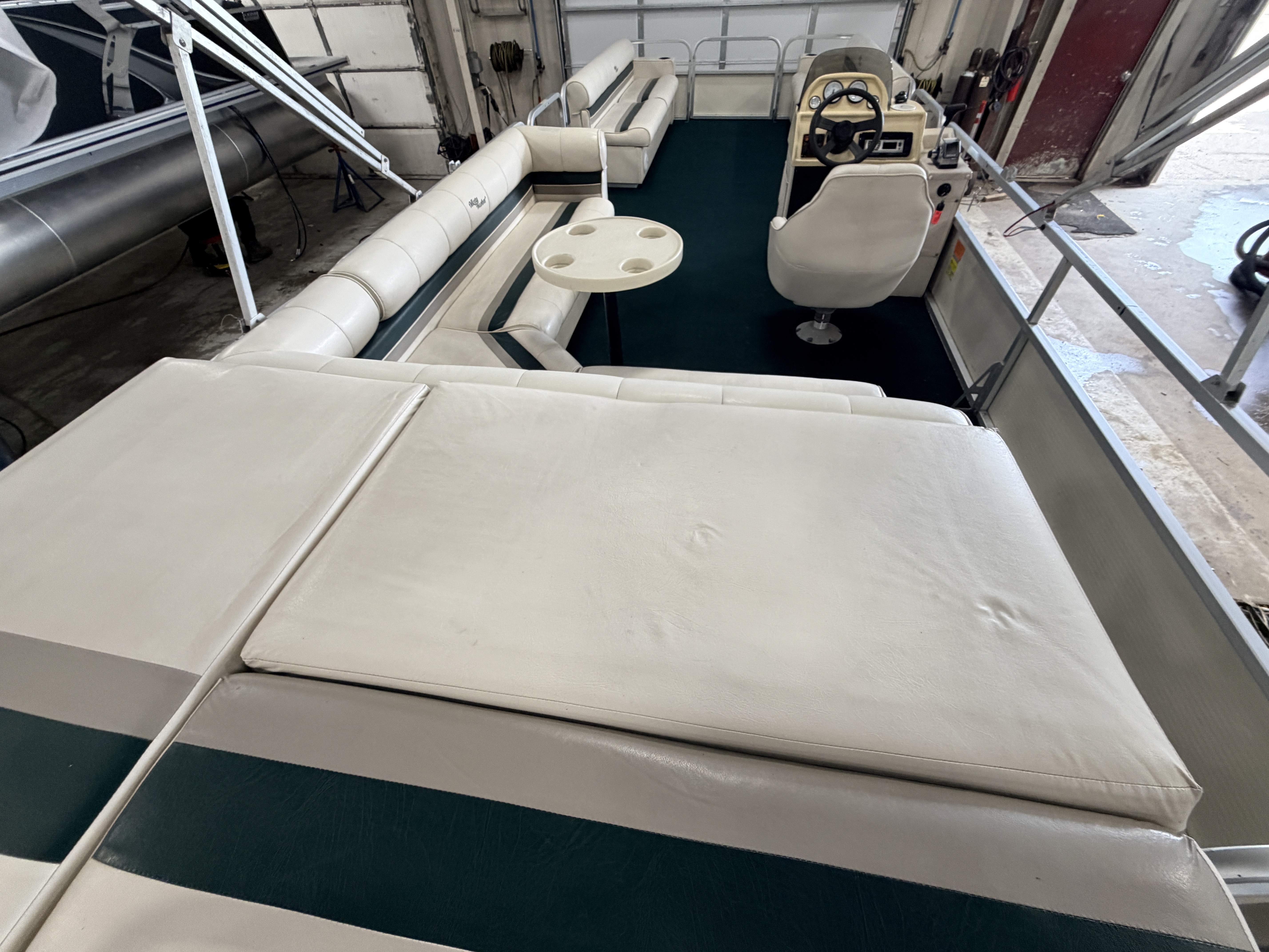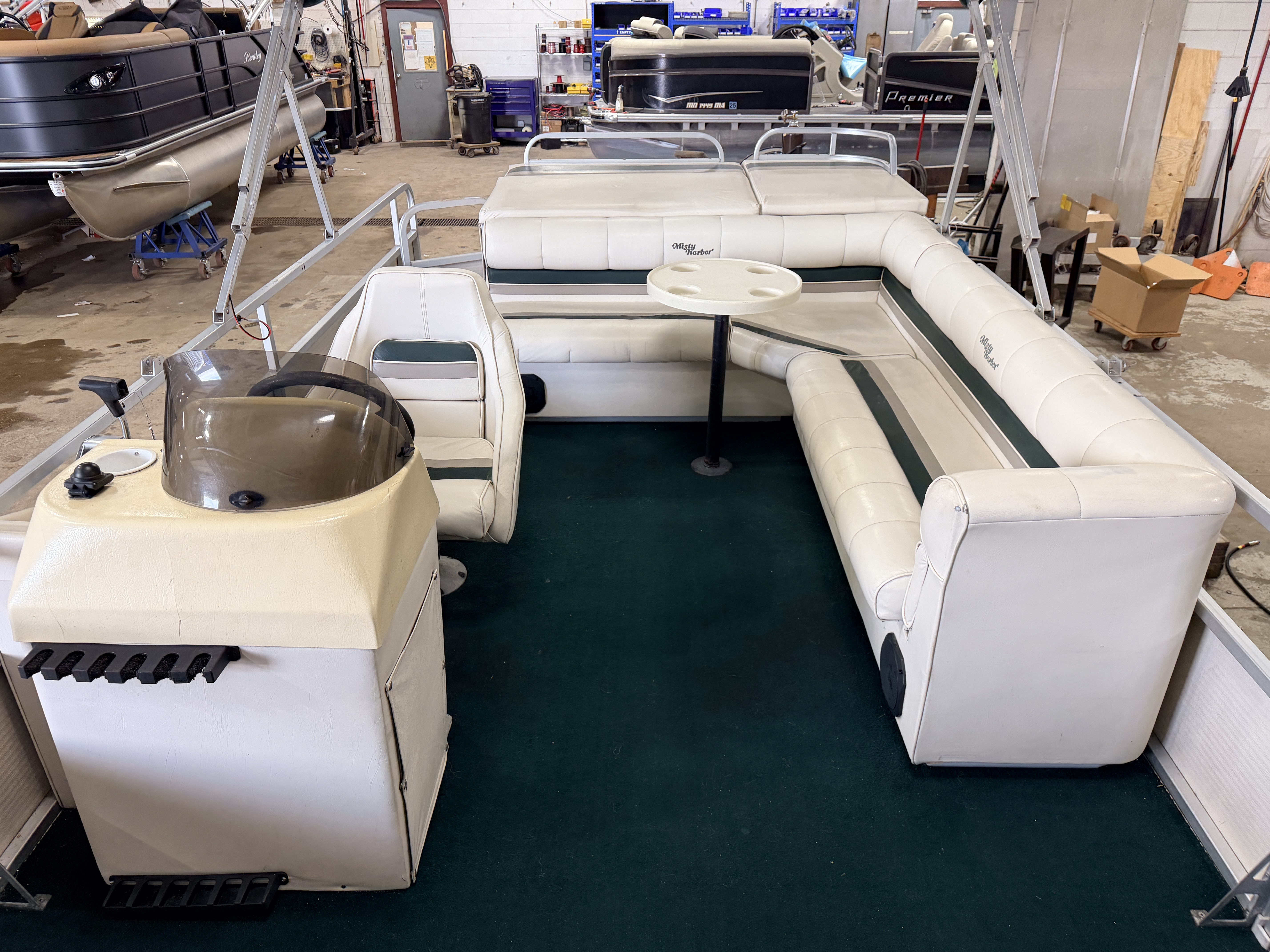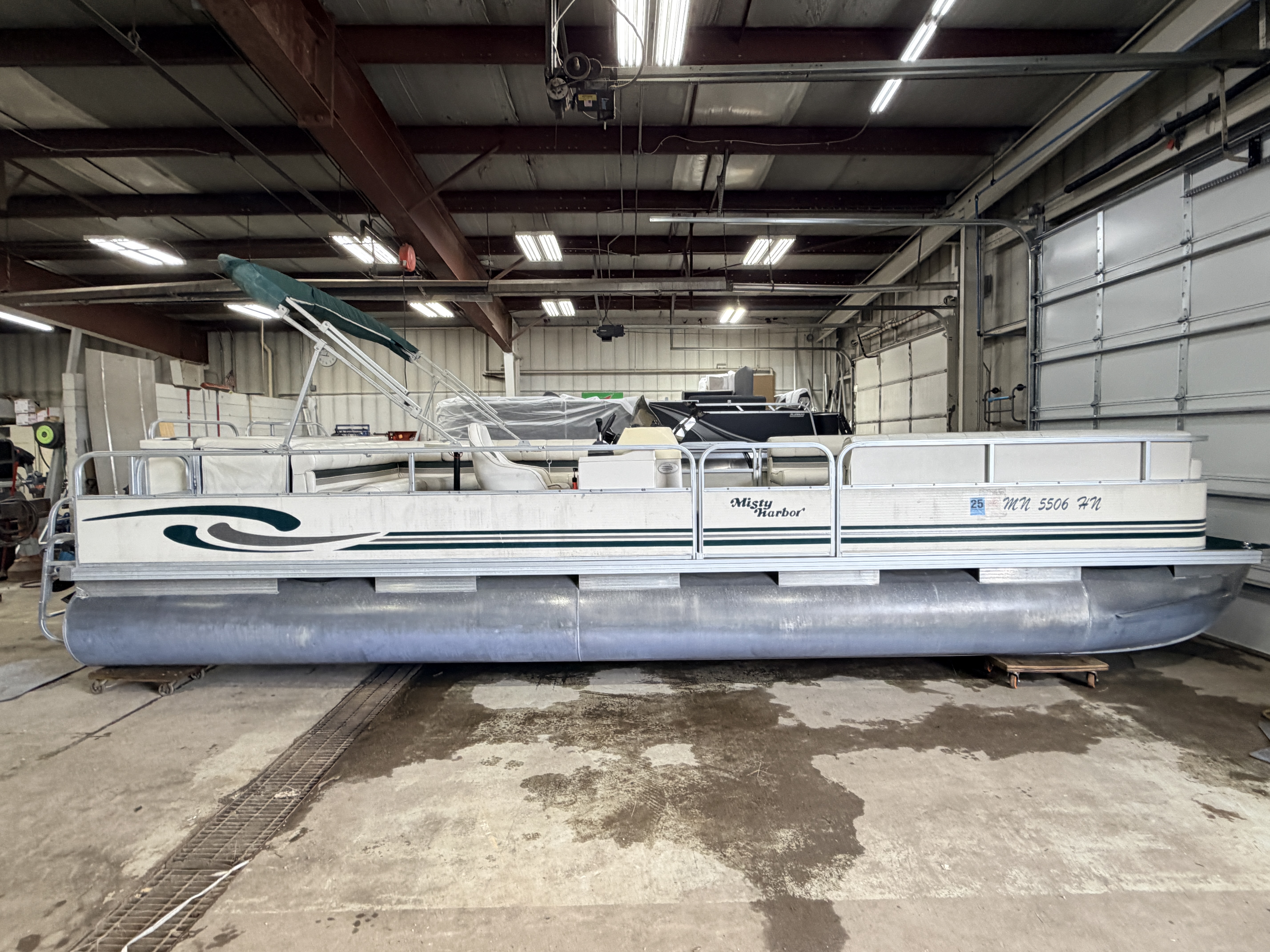 1998 Misty Harbor 2424 Pontoon & 60HP Mercury Bigfoot. Interior seating includes 2 couches, L-shaped couch, Captain's Chair and Sun Deck. Features include Bimini Top, Table, In-Seat Storage, Large Storage under Sun Deck, Bow Swim Platform & Stern Swim Ladder, Speedometer, Tachometer, Fuel and Volt gauges, and Pyle Bluetooth Stereo. Additional features include LED Navigation Lights, Compass on dash, and Vertical Fishing Rod Storage on front of helm.