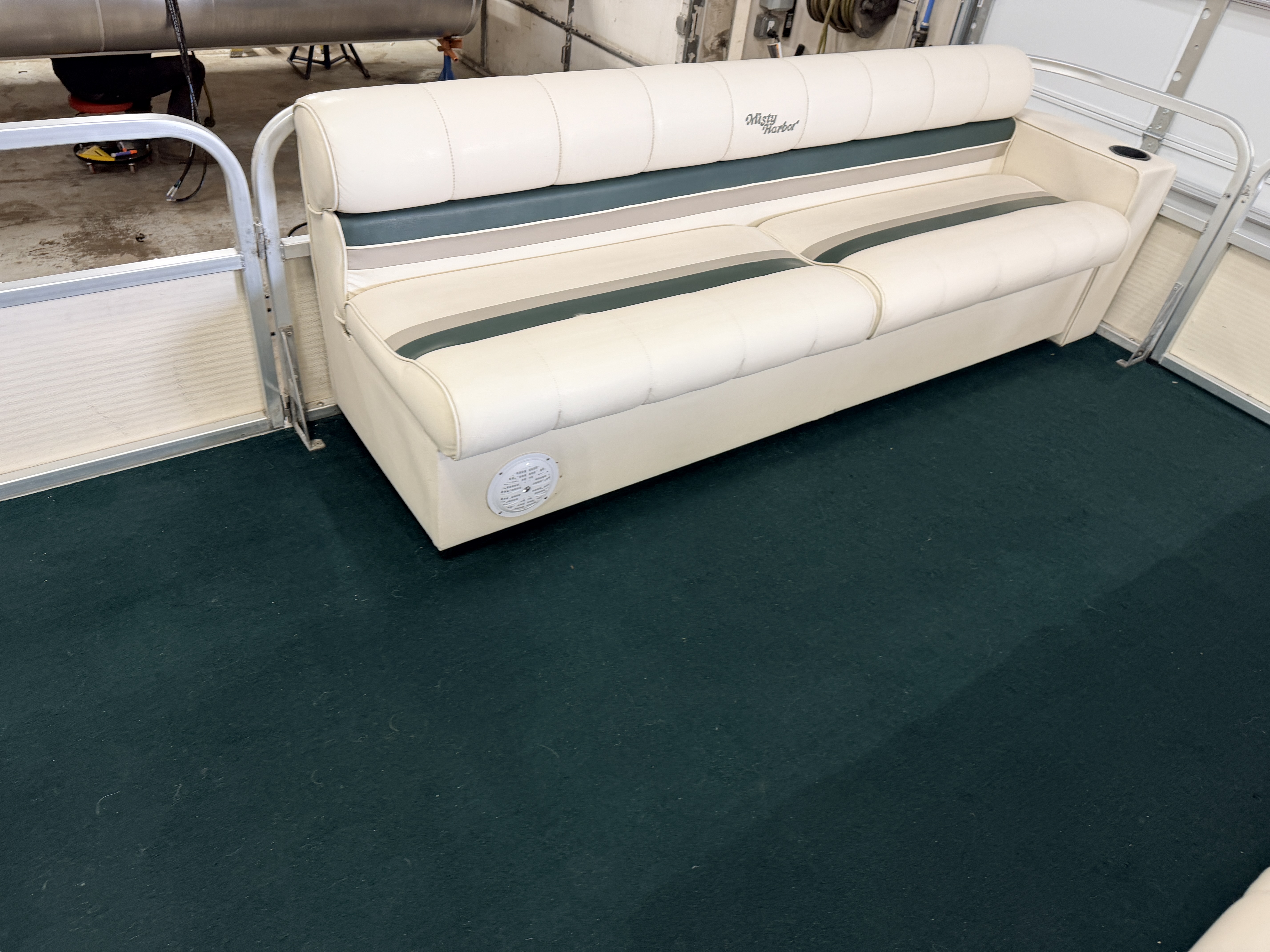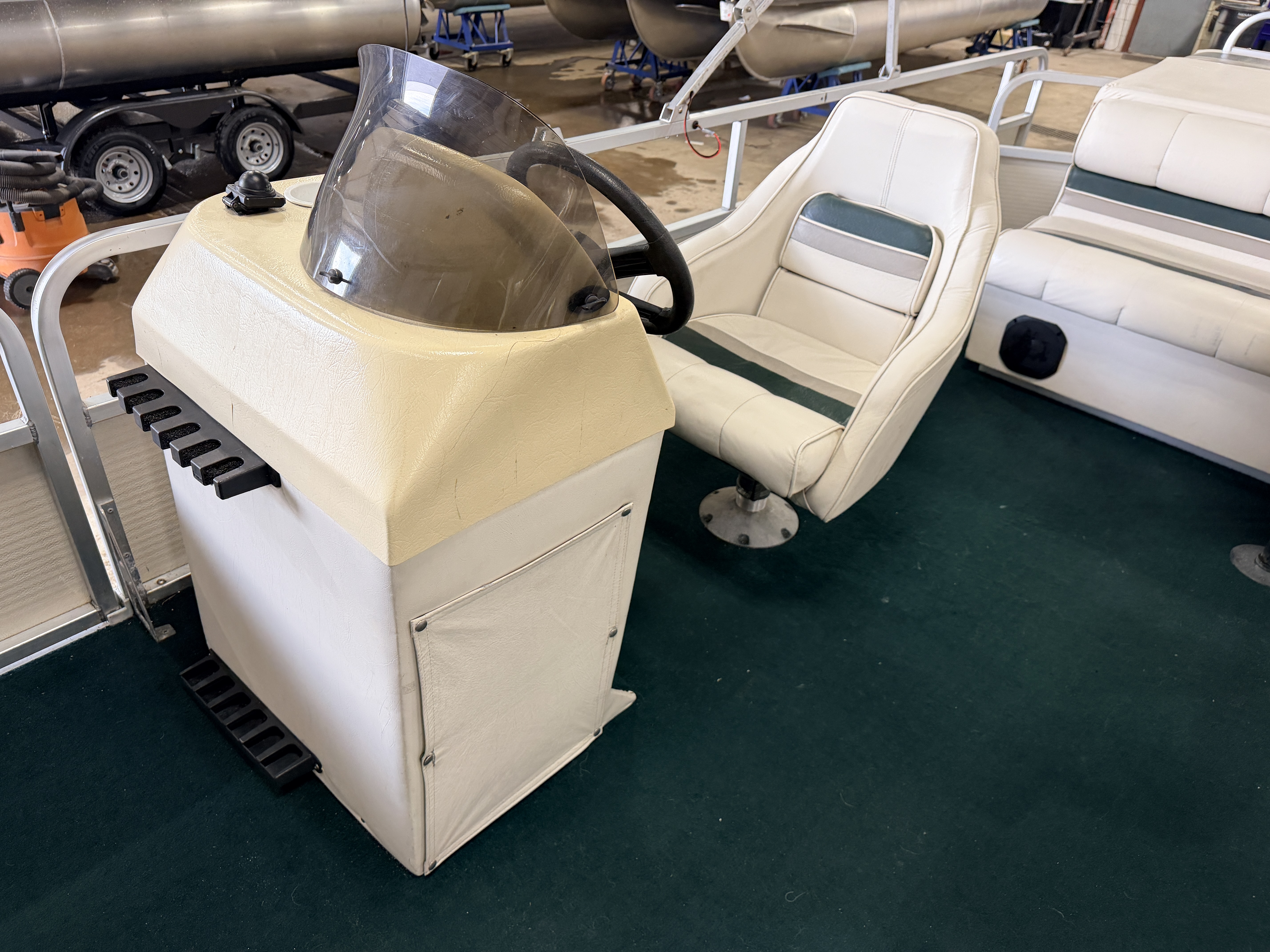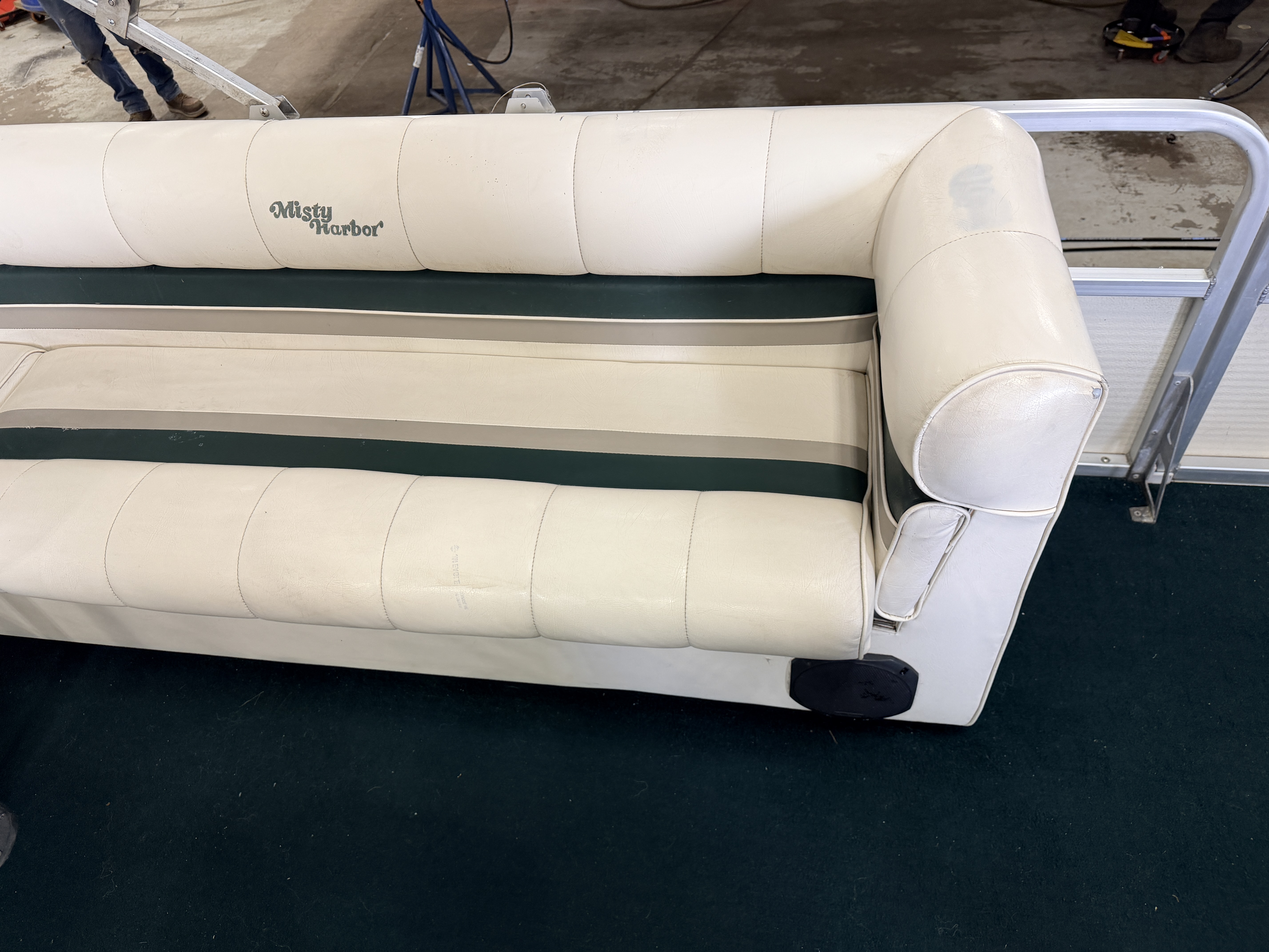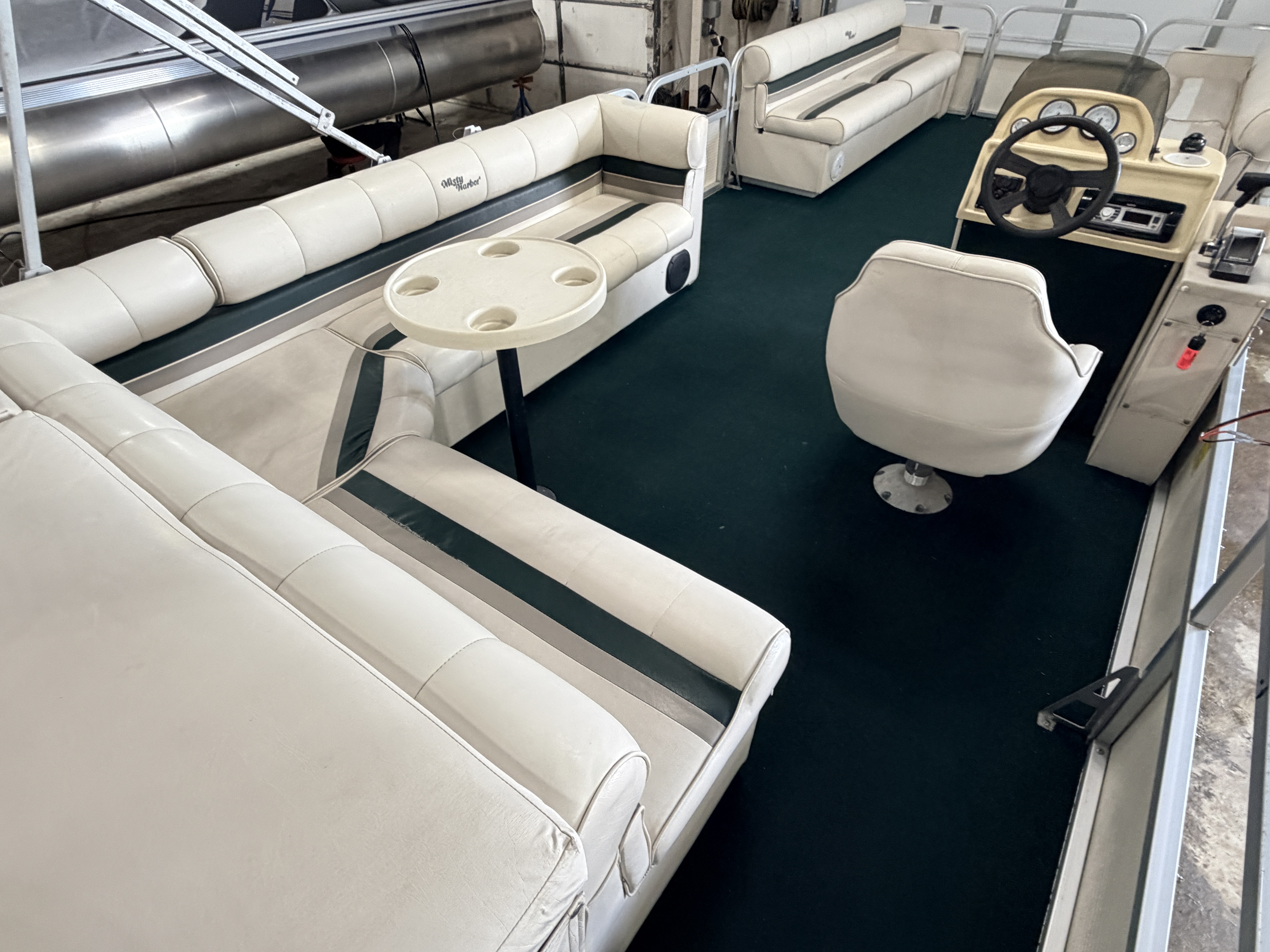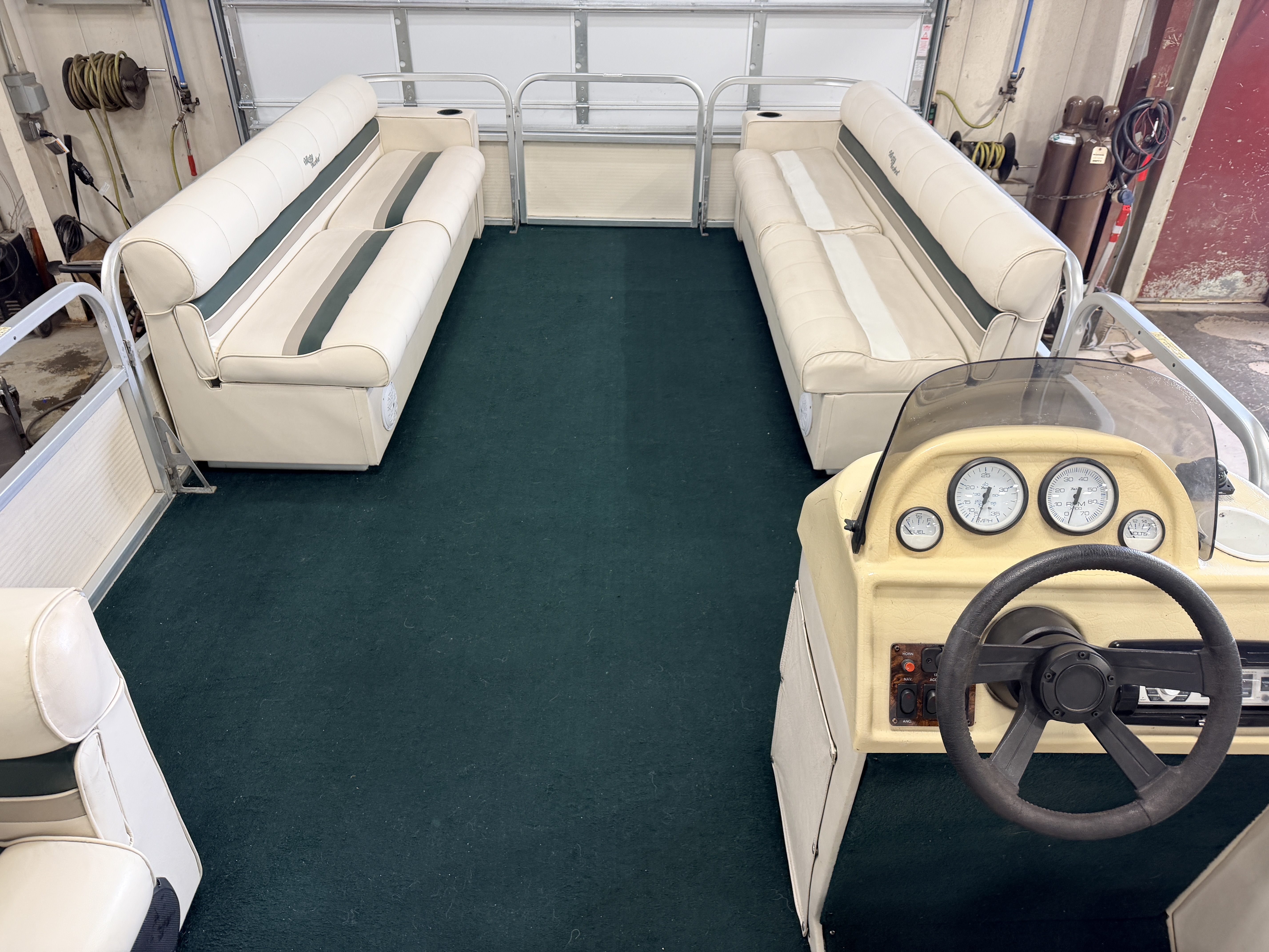 1998 Misty Harbor 2424 Pontoon & 60HP Mercury Bigfoot. Interior seating includes 2 couches, L-shaped couch, Captain's Chair and Sun Deck. Features include Bimini Top, Table, In-Seat Storage, Large Storage under Sun Deck, Bow Swim Platform & Stern Swim Ladder, Speedometer, Tachometer, Fuel and Volt gauges, and Pyle Bluetooth Stereo. Additional features include LED Navigation Lights, Compass on dash, and Vertical Fishing Rod Storage on front of helm.