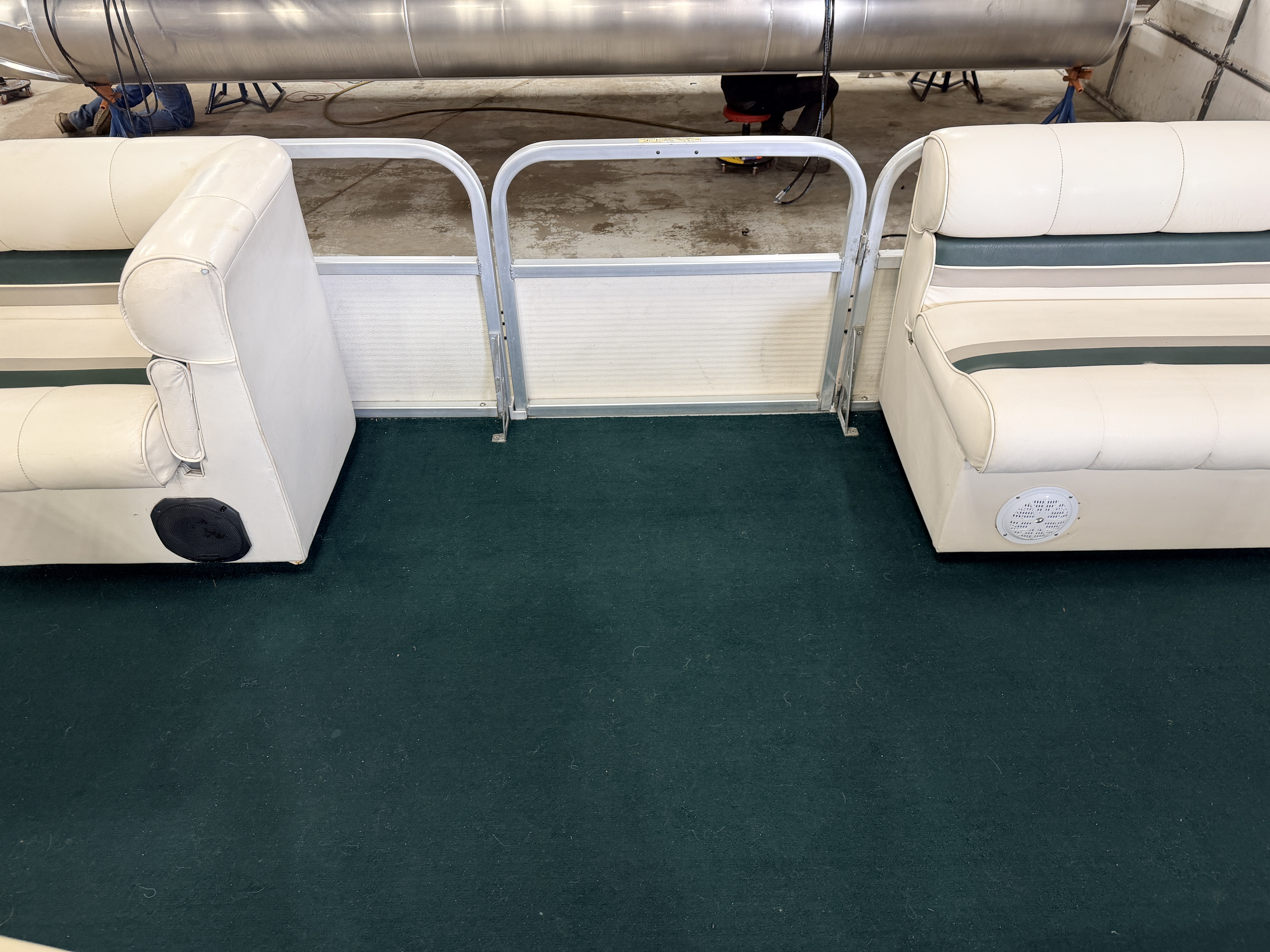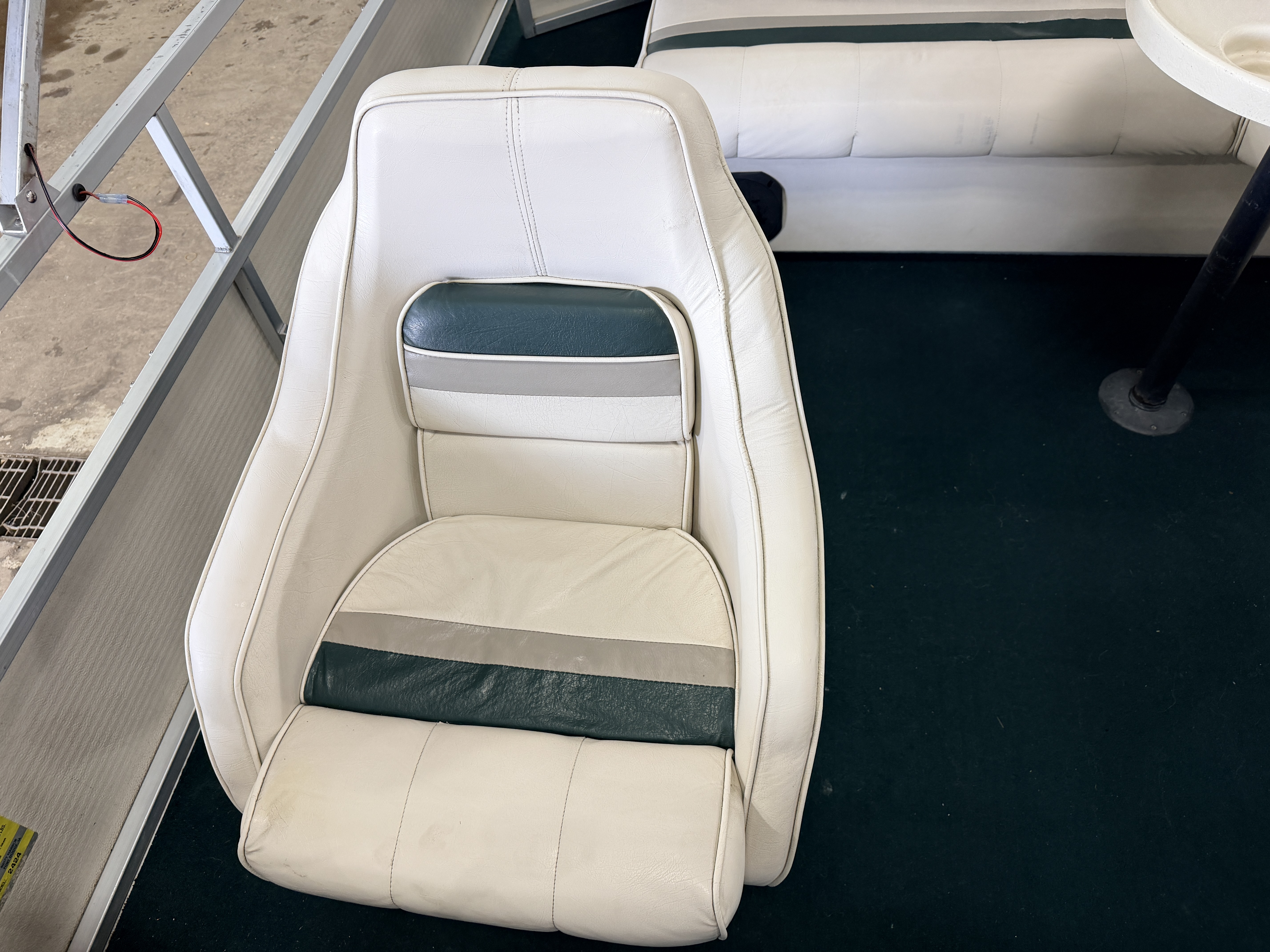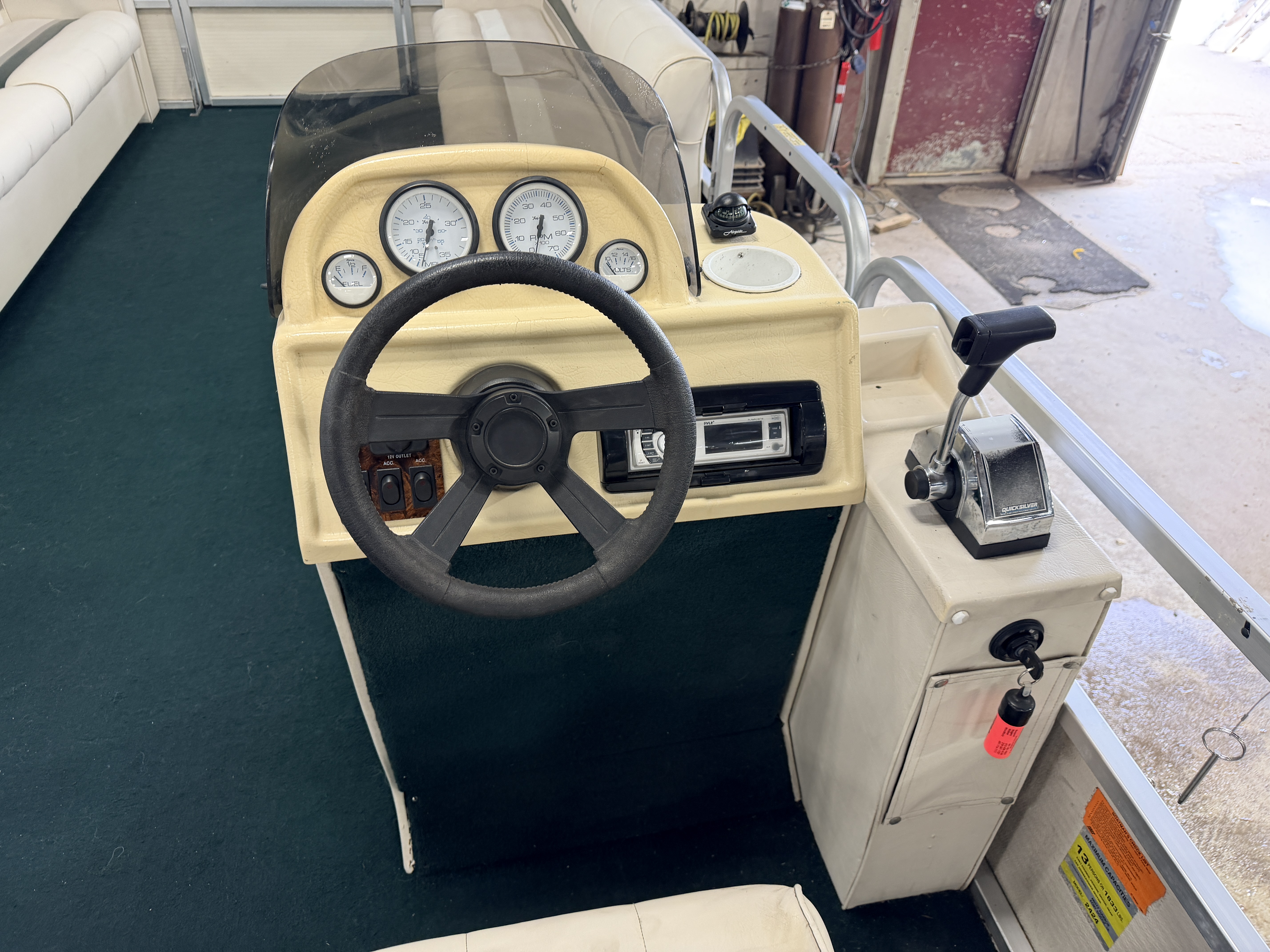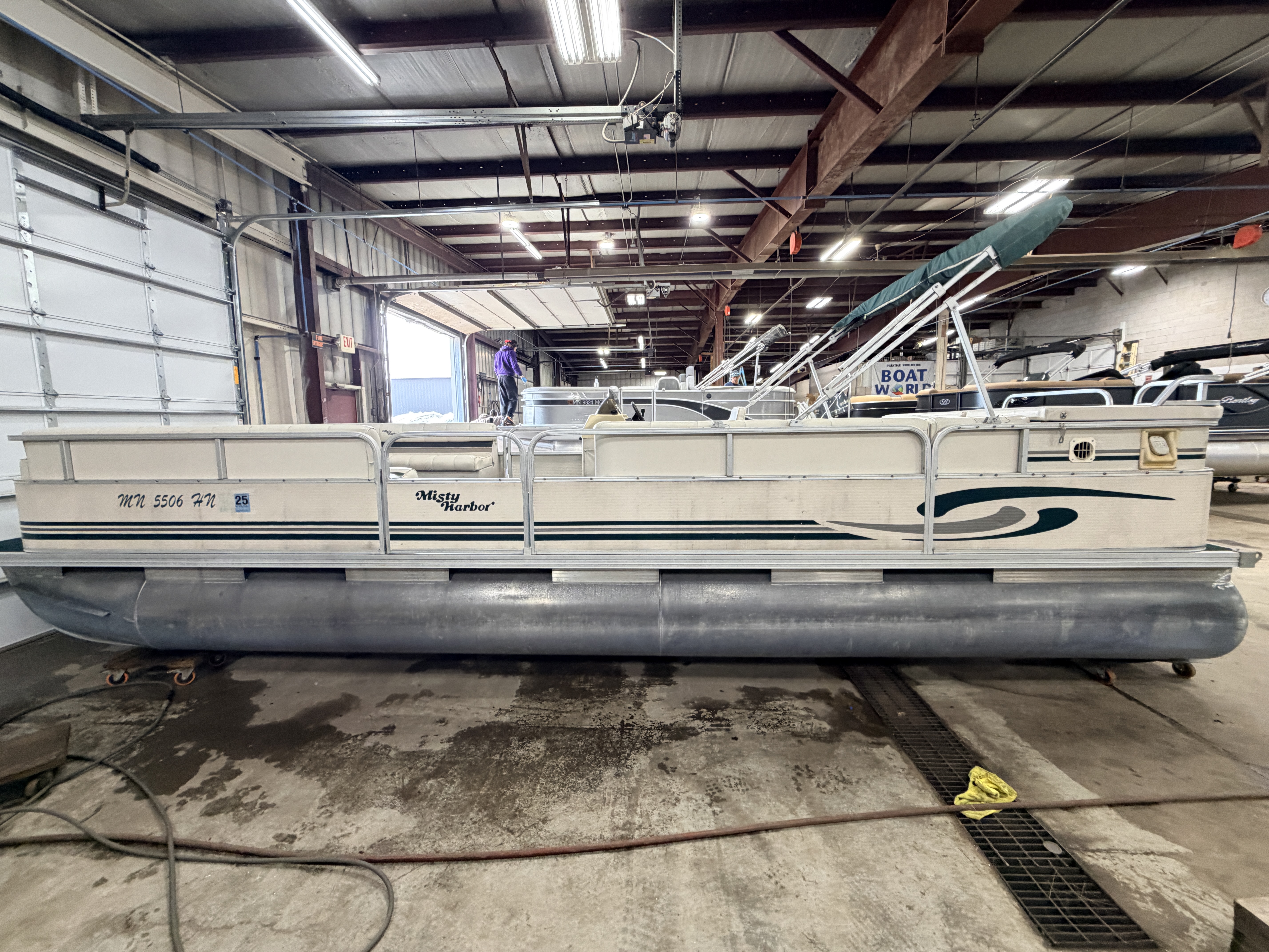 1998 Misty Harbor 2424 Pontoon & 60HP Mercury Bigfoot. Interior seating includes 2 couches, L-shaped couch, Captain's Chair and Sun Deck. Features include Bimini Top, Table, In-Seat Storage, Large Storage under Sun Deck, Bow Swim Platform & Stern Swim Ladder, Speedometer, Tachometer, Fuel and Volt gauges, and Pyle Bluetooth Stereo. Additional features include LED Navigation Lights, Compass on dash, and Vertical Fishing Rod Storage on front of helm.