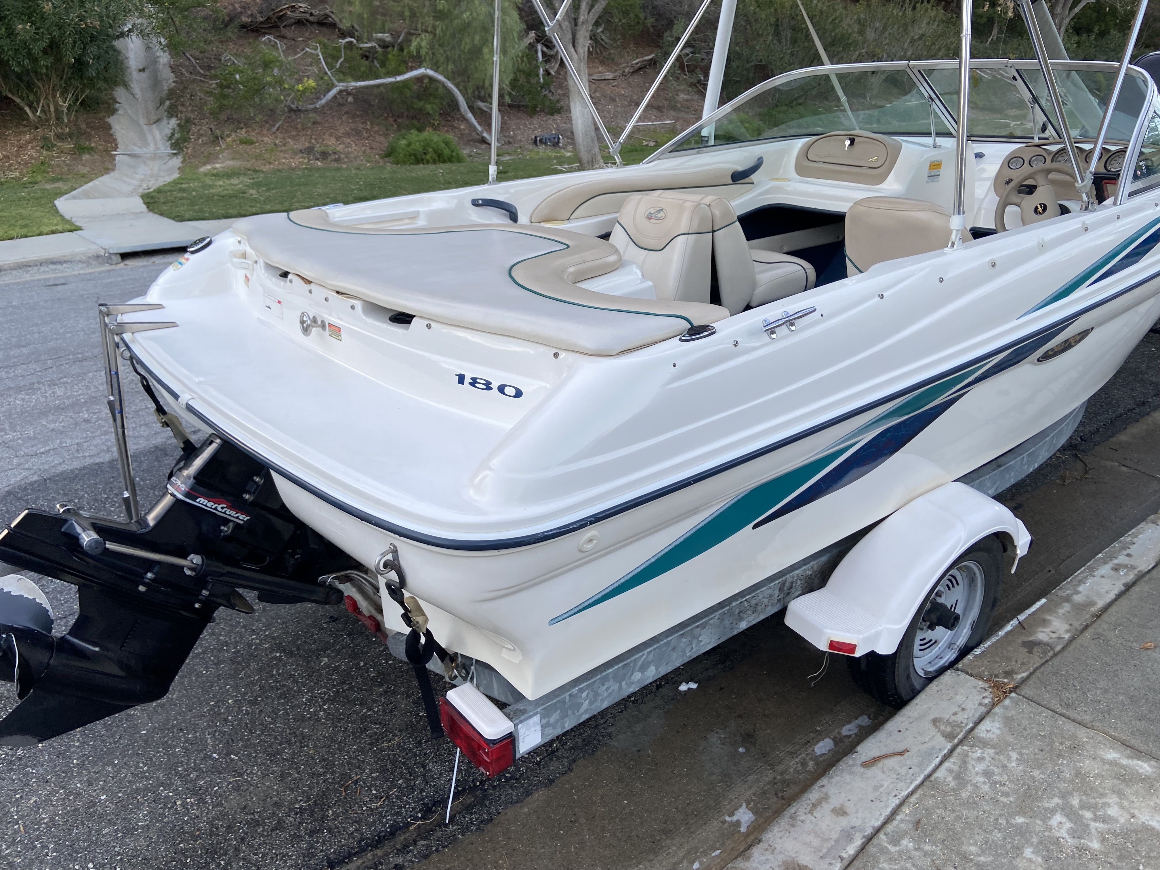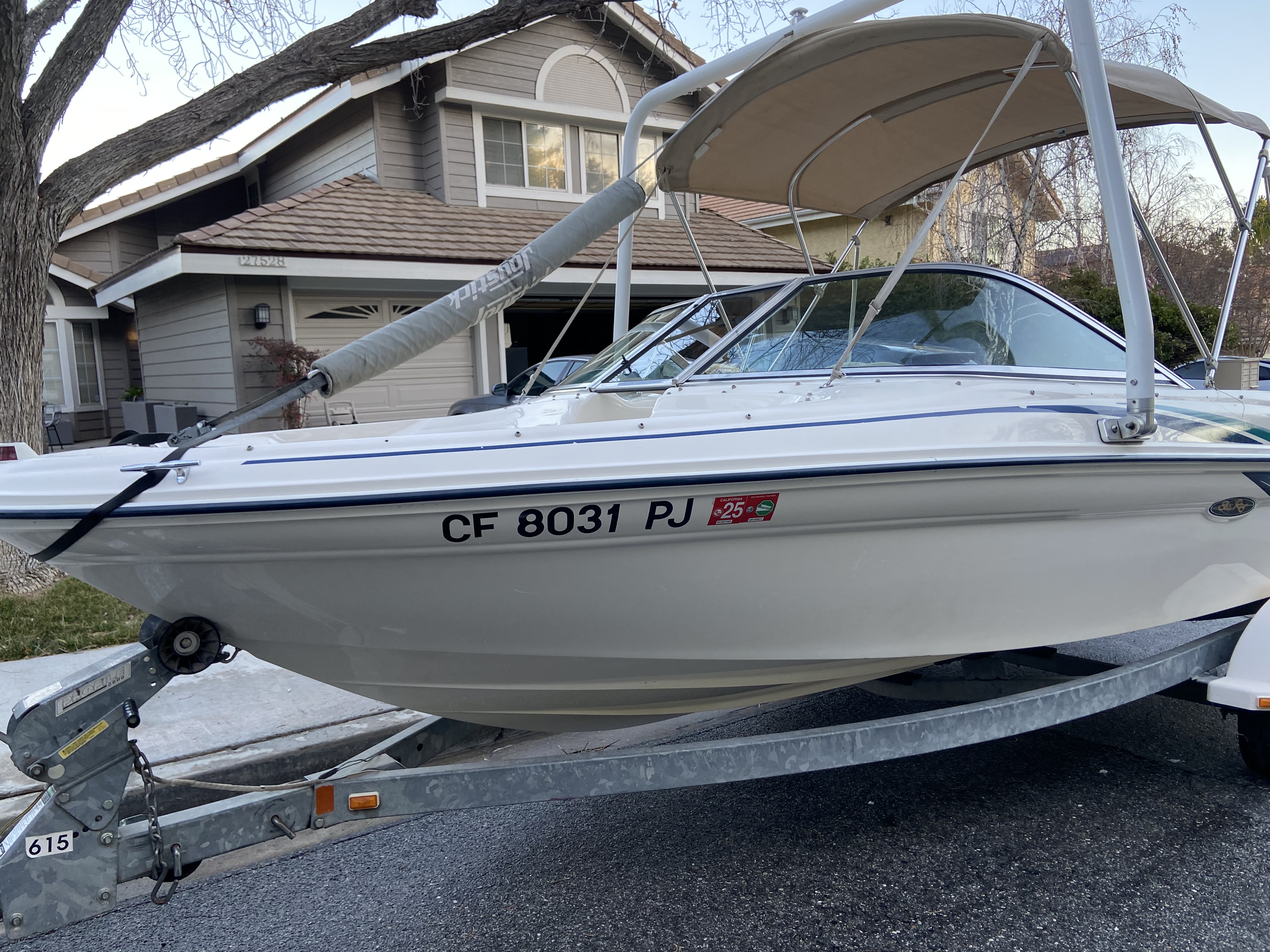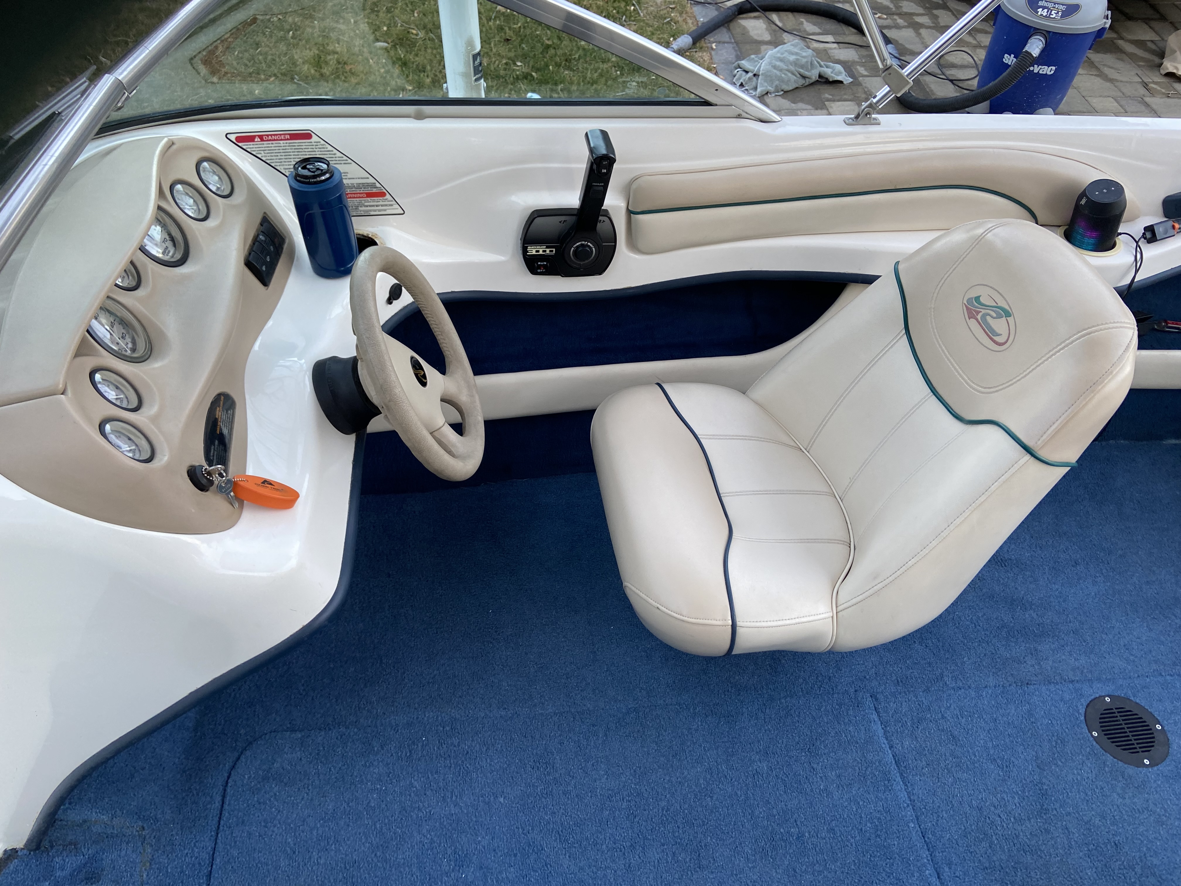 Great starter ski boat, just replaced its 135Hp 3.0L Mercruiser engine this year with a 2010 model, runs very well, goes about 40 mph with its 21” prop which in good condition, two spare props that just need to be repaired, out drive and carpet flooring replaced a few years ago, new cover, hull is in very good condition, stereo with Bluetooth, aftermarket ski tow bar for easier pulling of skiers, bimini, upholstery in good condition, swim step ladder, trailer lights all working, trailer boat planks need securing but still fully functional, trailer jack replaced about 10 years ago, other included accessories are cup holders, two boat bumpers with tie off rope, marine rope, one floatation device, one life jacket, an oar, marine lights, horn, bilge pump, exhaust fan, several storage compartments, ice chest compartment, fold down seats for sunbathing, $7,500 obo