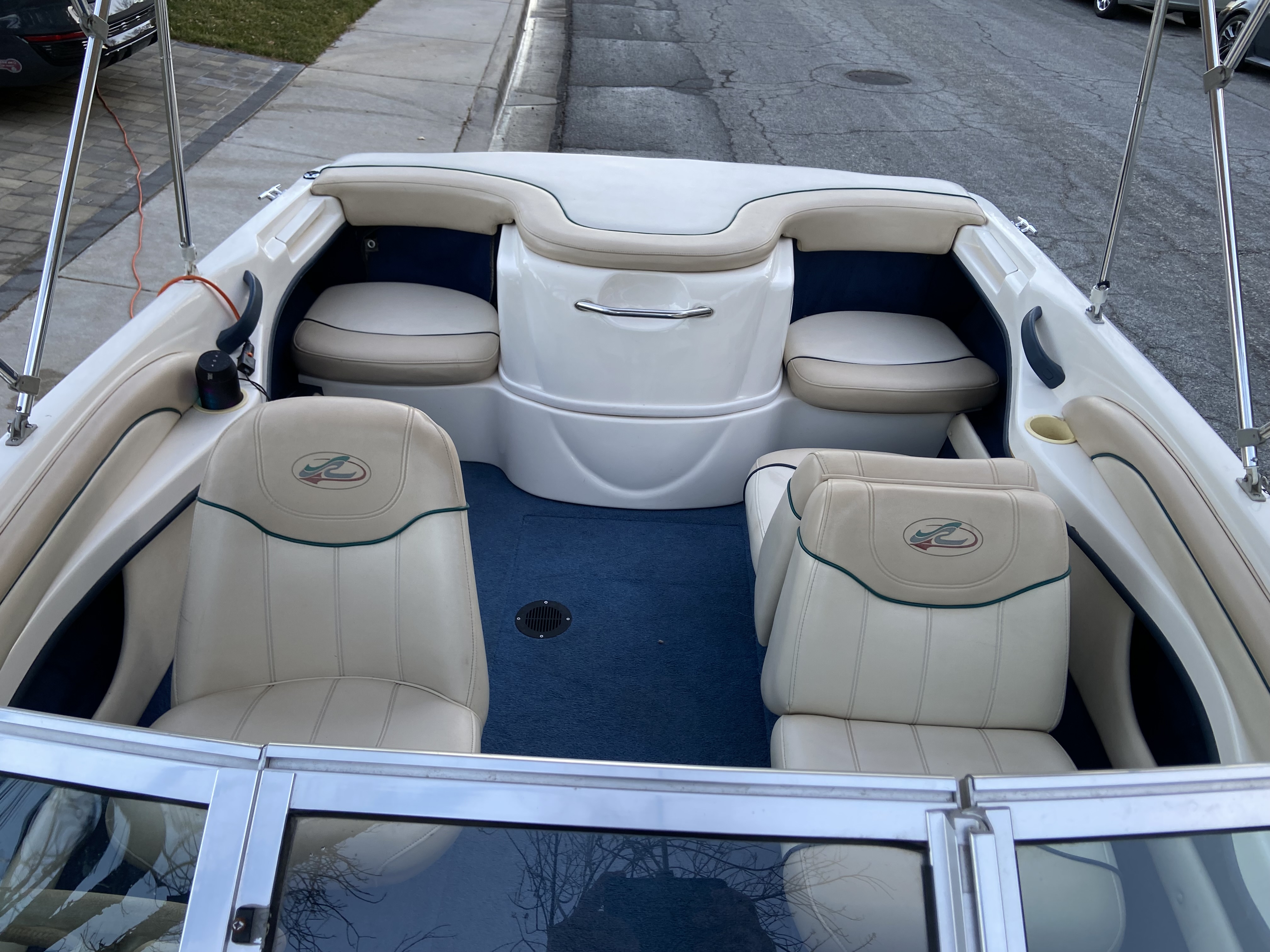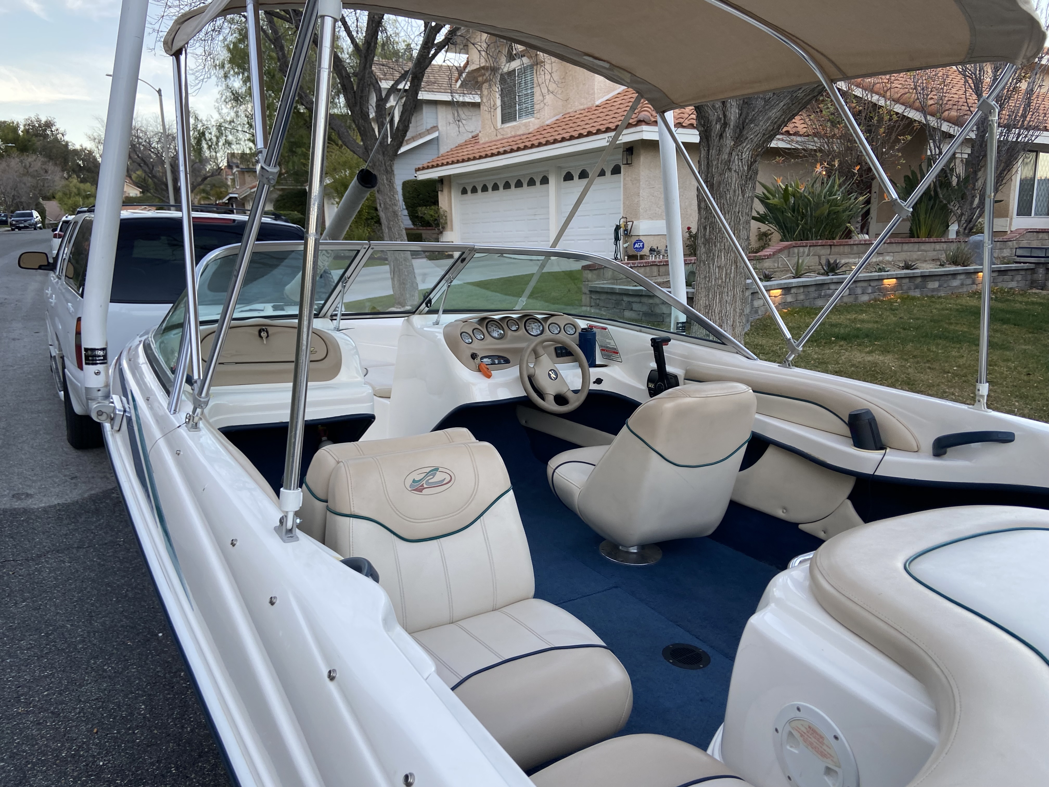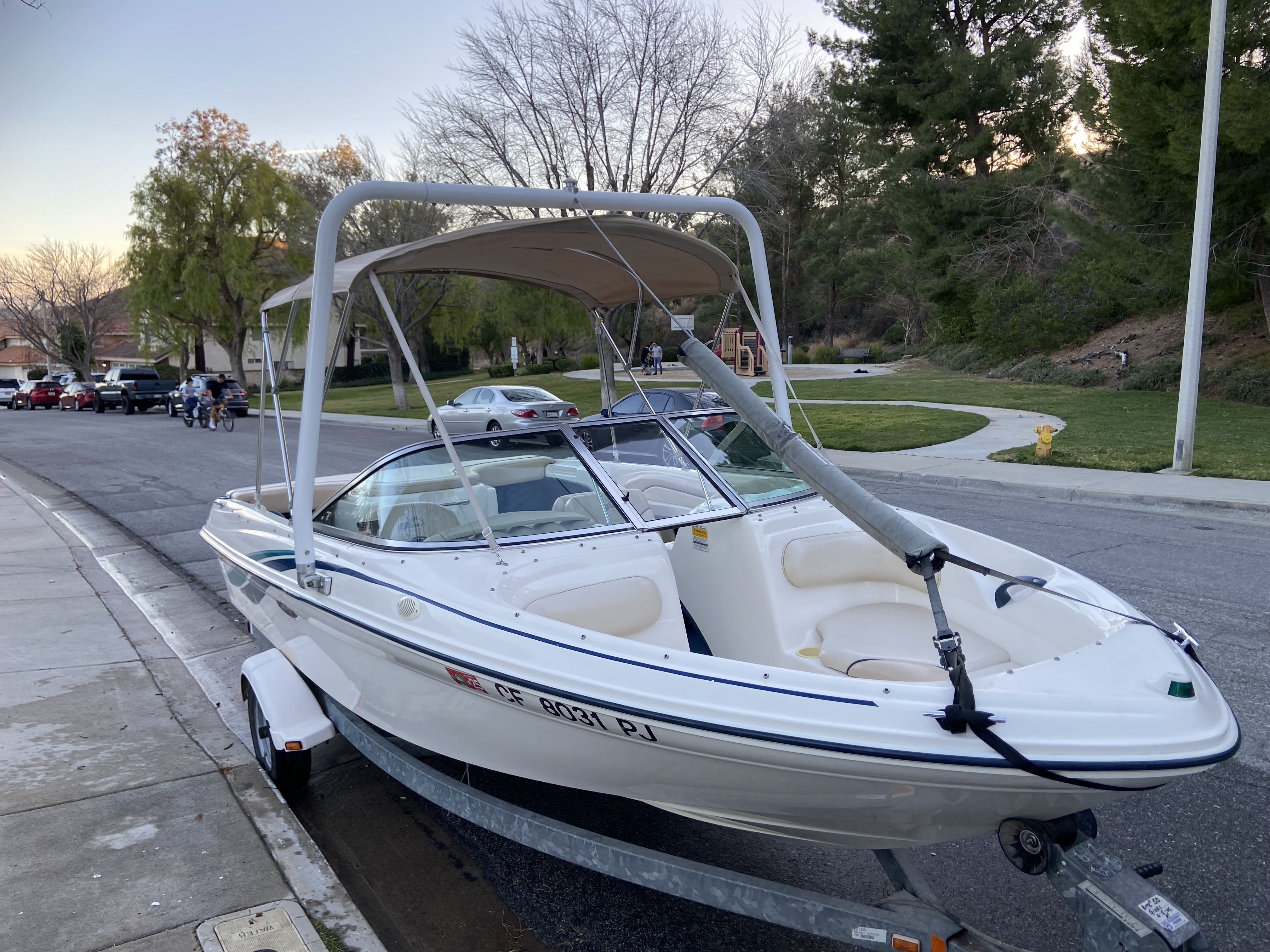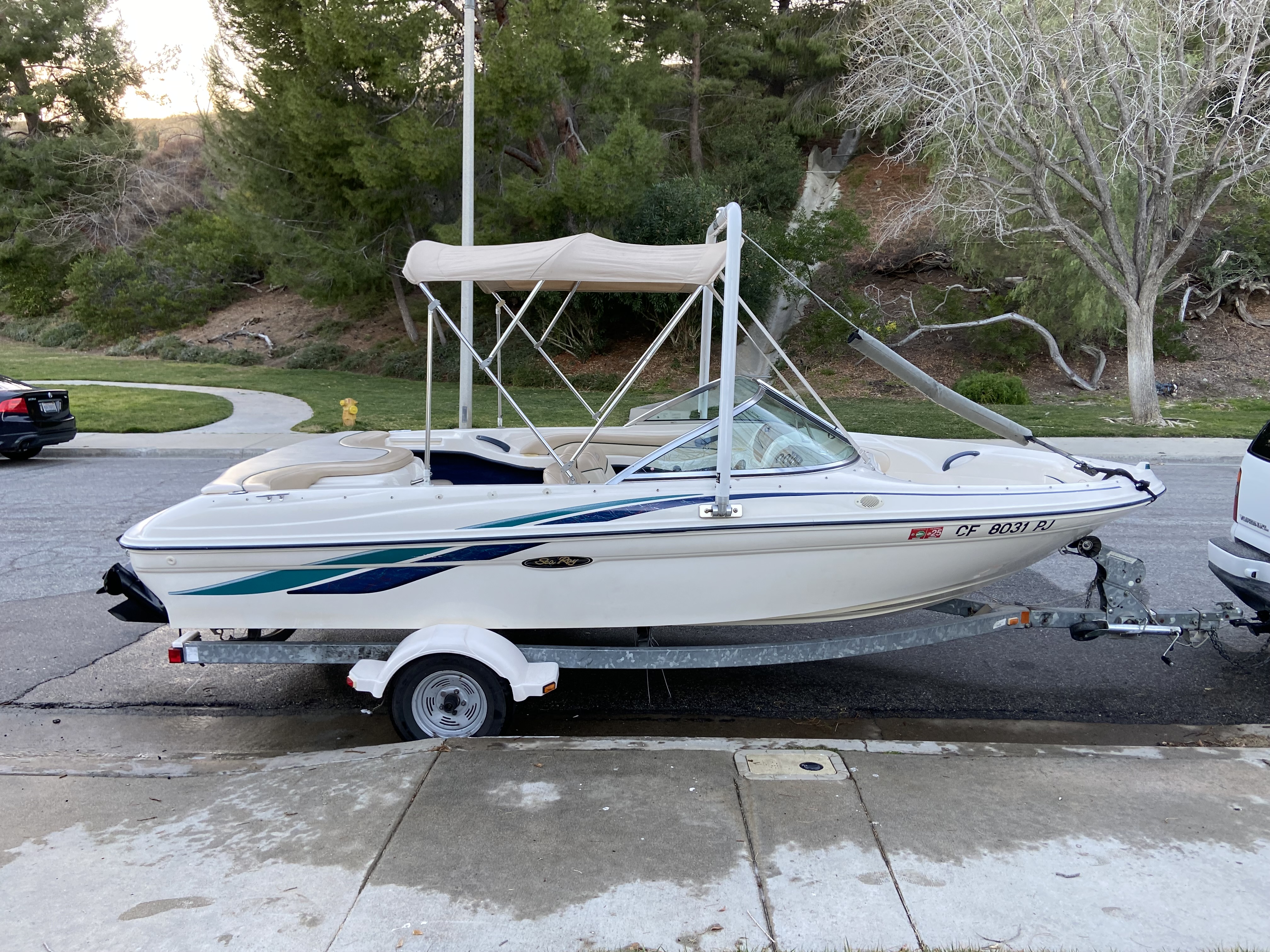 Great starter ski boat, just replaced its 135Hp 3.0L Mercruiser engine this year with a 2010 model, runs very well, goes about 40 mph with its 21” prop which in good condition, two spare props that just need to be repaired, out drive and carpet flooring replaced a few years ago, new cover, hull is in very good condition, stereo with Bluetooth, aftermarket ski tow bar for easier pulling of skiers, bimini, upholstery in good condition, swim step ladder, trailer lights all working, trailer boat planks need securing but still fully functional, trailer jack replaced about 10 years ago, other included accessories are cup holders, two boat bumpers with tie off rope, marine rope, one floatation device, one life jacket, an oar, marine lights, horn, bilge pump, exhaust fan, several storage compartments, ice chest compartment, fold down seats for sunbathing, $7,500 obo