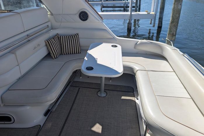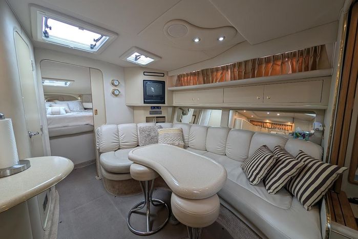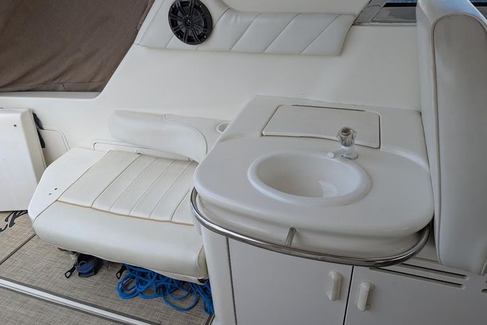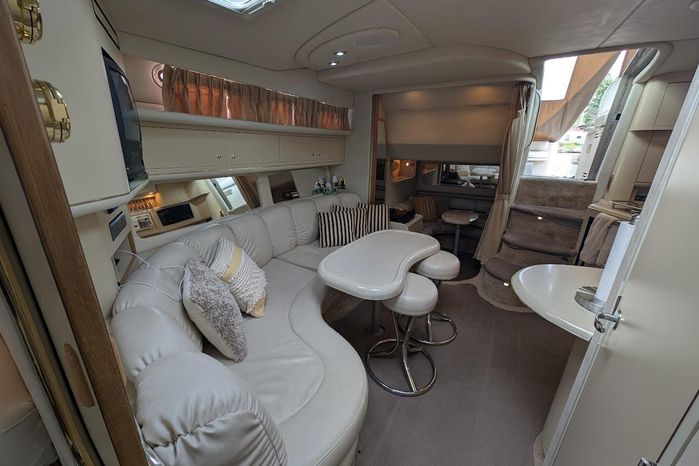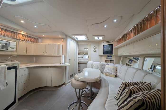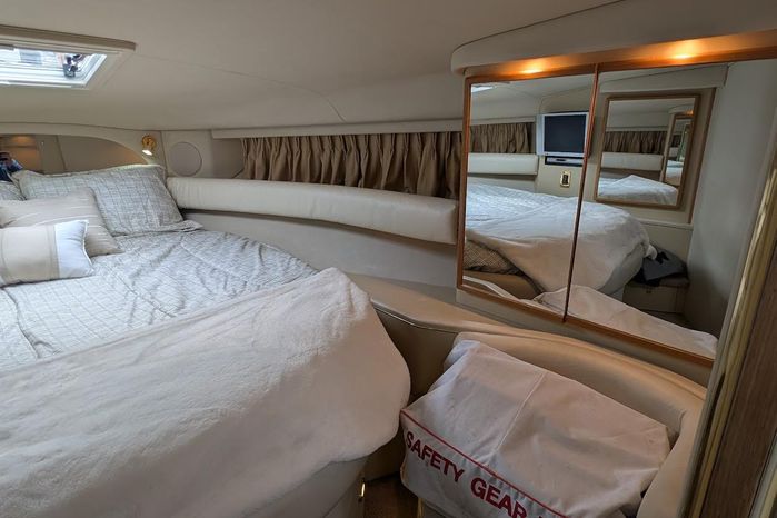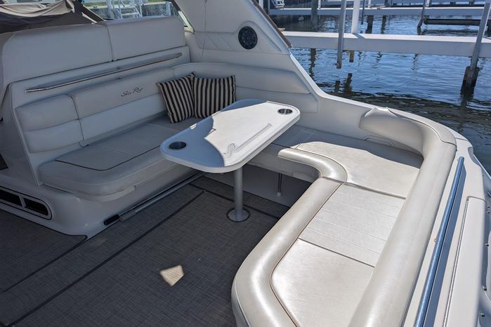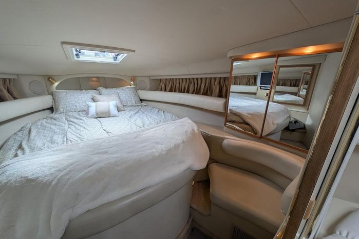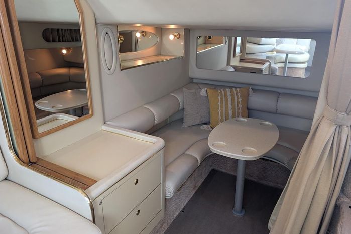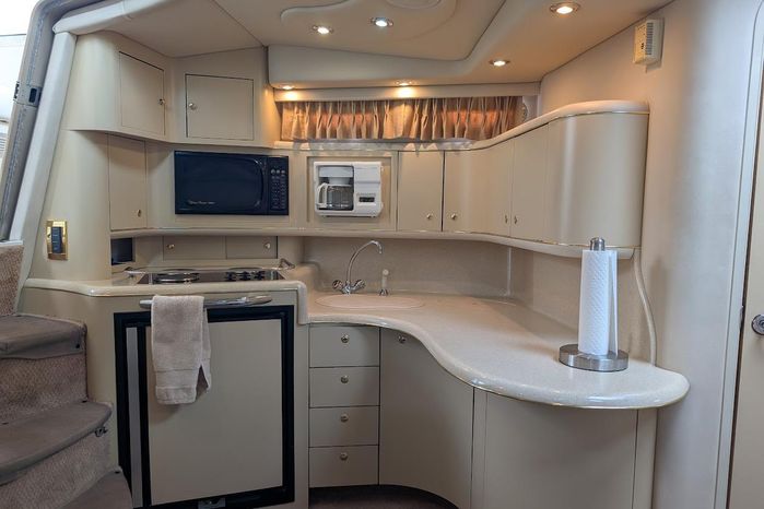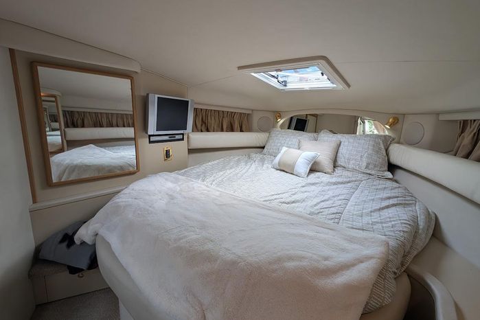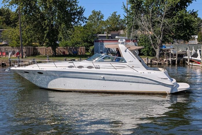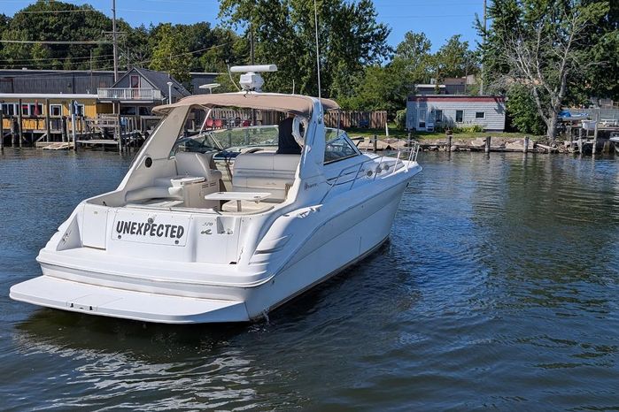 Take a look at this never salted, fresh water only 1998 Sea Ray 370 Sundancer, a stunning express cruiser that embodies elegance and performance. Powered by twin MerCruiser 454 MAG MP inboard engines, each delivering an impressive 380 horsepower, this boat is equipped for exhilarating cruising experiences. The electric windlass adds convenience, making anchoring a breeze. Accommodations include two comfortable cabins and a well-appointed head, providing ample space for relaxation and privacy. The thoughtful design and quality craftsmanship make this Sea Ray 370 Sundancer a perfect choice for both leisurely outings and adventurous voyages. This two owner boat has always been on Lake Michigan!
