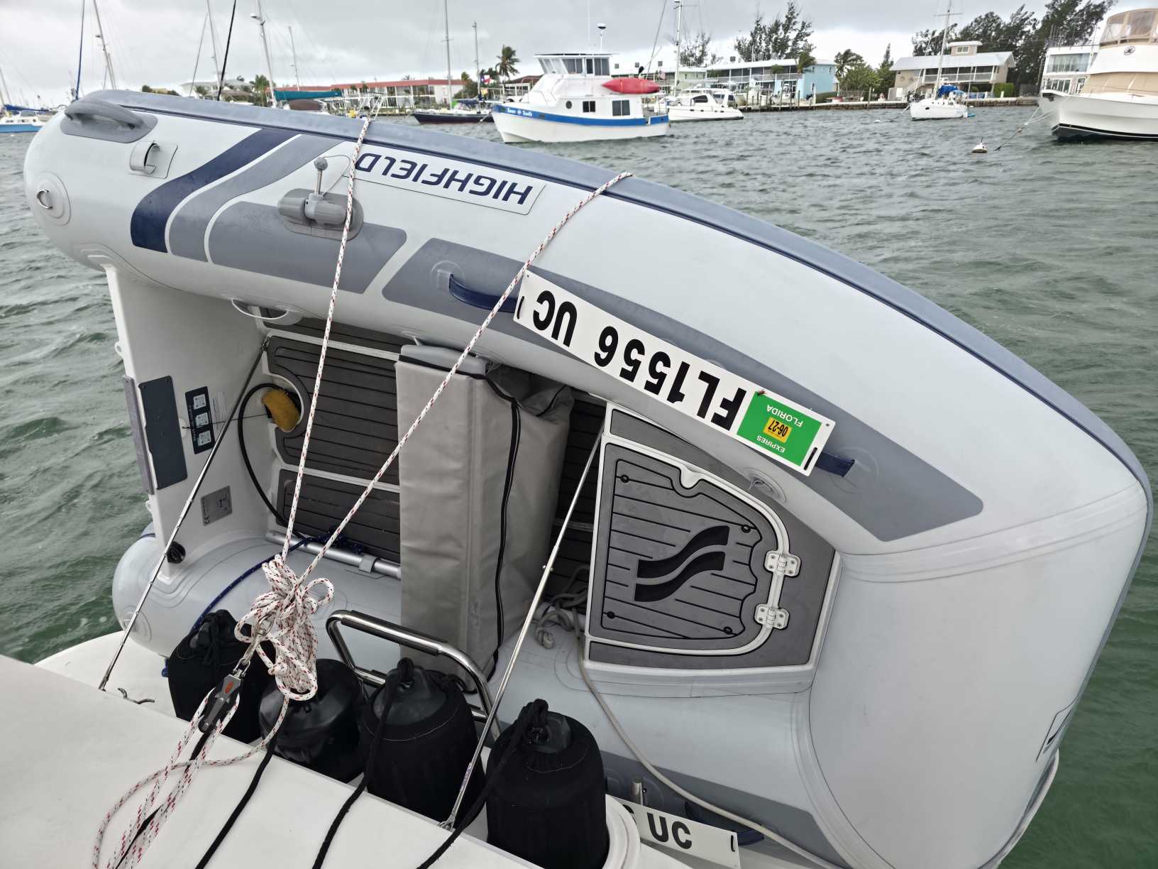 Anchor in confidence anywhere in the Atlantic Intracoastal Waterway (AICW), Florida Keys, Bahamas, Caribbean. The anchor and rode was upgraded in 2025 to a Rocna Mk II 25 (55 lb) galvanized (one size larger than recommended for the boat), and a rode consisting of 150 ft of 5/16” HT / G4 galvanized chain spliced to 100 ft of 5/8” nylon rope. The Lofrans Progress.1 windlass confidently deploys and retrieves the anchor and rode. A chain locker stores the rope and chain.