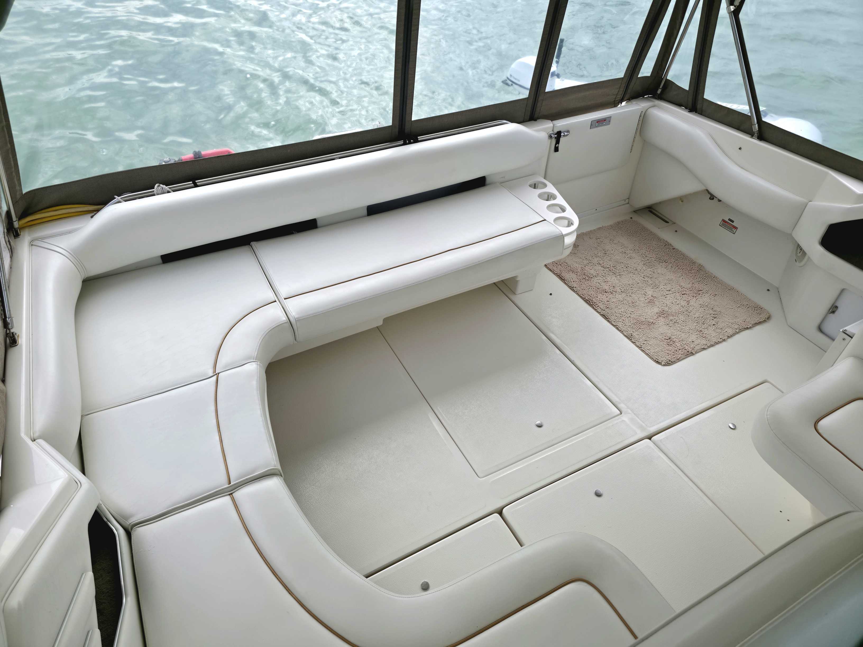 A new inflatable tender and outboard confidently transports 3+1 people from boat to shore. The 17” inflation tubes keep everyone dry during high wind conditions. The tender stores in a simple davit on the aft of the Sea Ray.