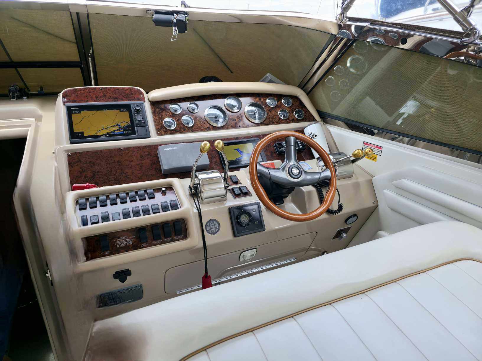 Helm navigation electronics include 2x Garmin chartplotters, sonar (fish finder), and radar. Everything you need to safely travel day or night.