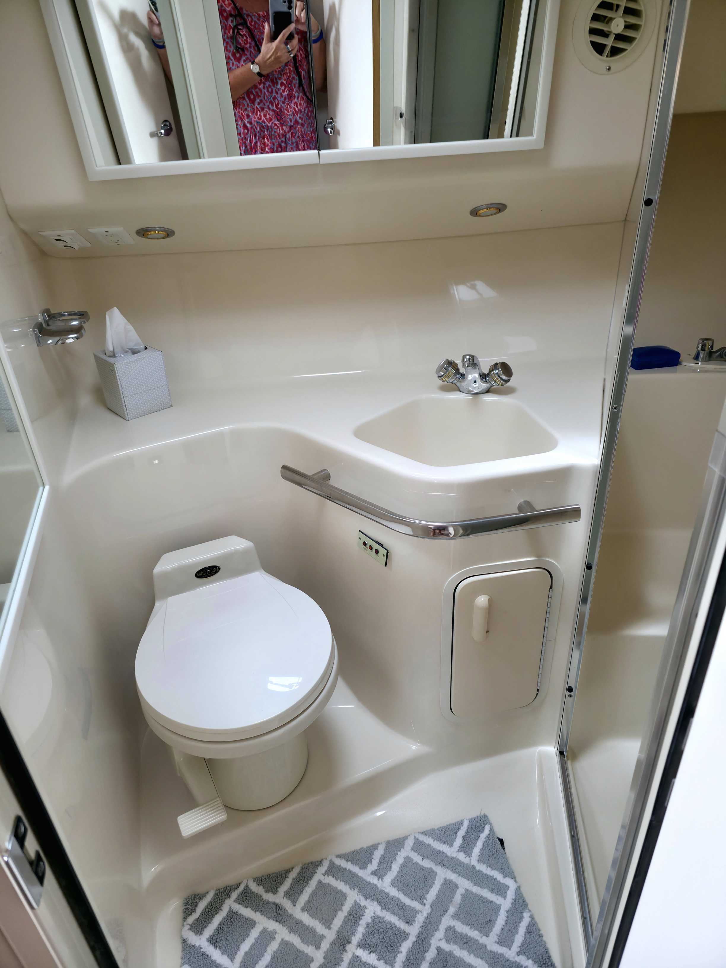 Head: Separate shower, sink, Vacuflush toilet, etc.