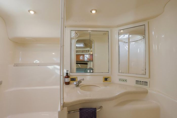 Excellent condition. Recent insurance survey used the word "Bristol" Repowered in 2016. Lift Kept by very meticulous owner. Selling to go newer. Twin 7.4 MPI Mercruiser V Drive.