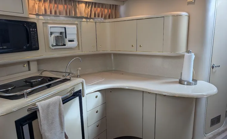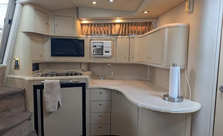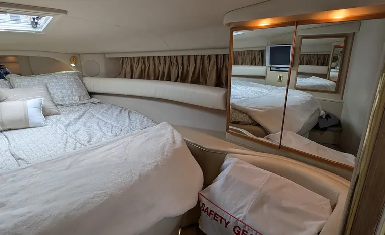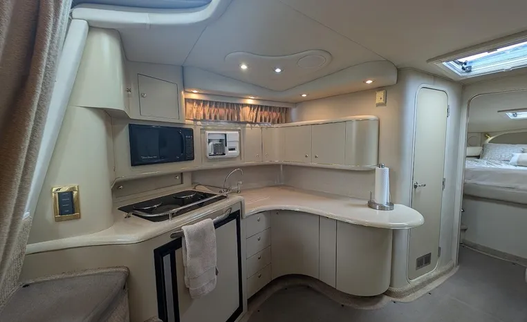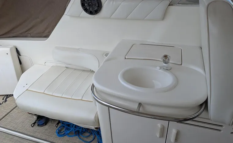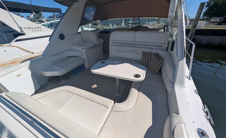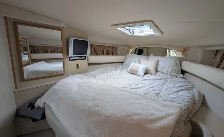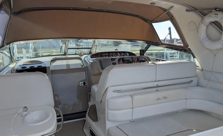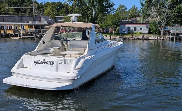 Take a look at this never salted, fresh water only 1998 Sea Ray 370 Sundancer, a stunning express cruiser that embodies elegance and performance. Powered by twin MerCruiser 454 MAG MP inboard engines, each delivering an impressive 380 horsepower, this boat is equipped for exhilarating cruising experiences. The electric windlass adds convenience, making anchoring a breeze. Accommodations include two comfortable cabins and a well-appointed head, providing ample space for relaxation and privacy. The thoughtful design and quality craftsmanship make this Sea Ray 370 Sundancer a perfect choice for both leisurely outings and adventurous voyages. This two owner boat has always been on Lake Michigan!