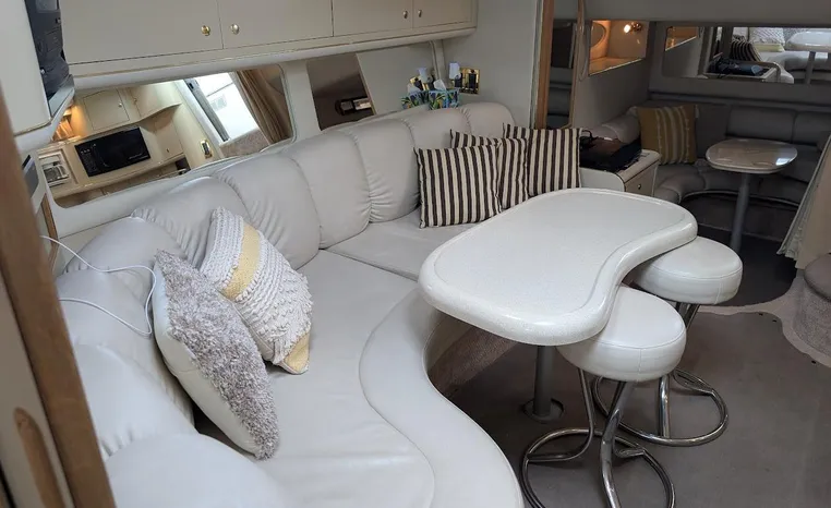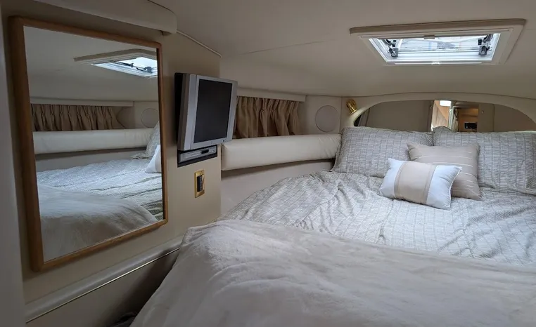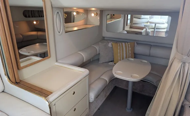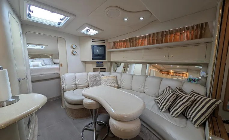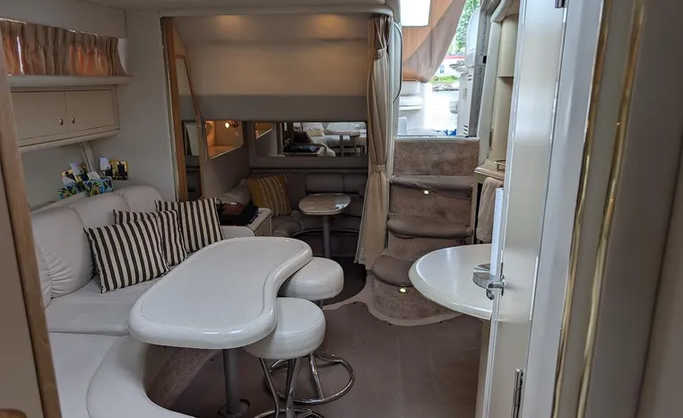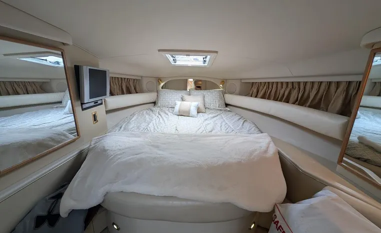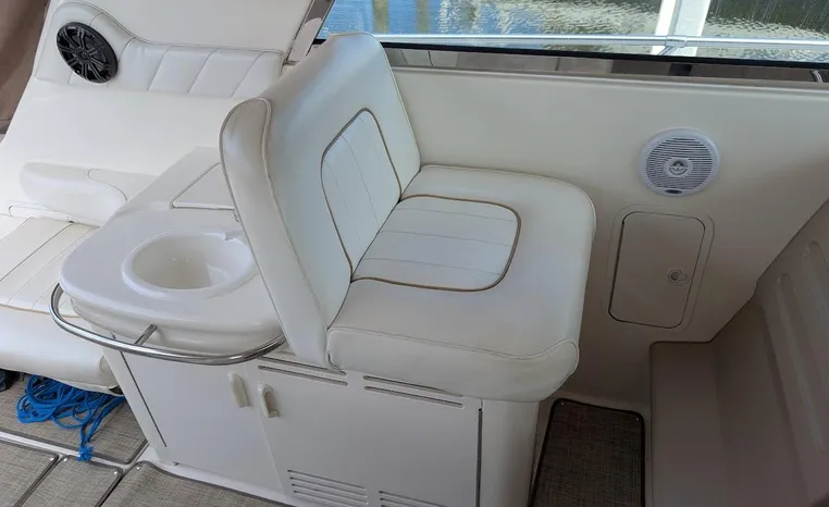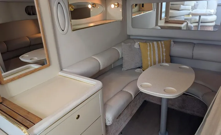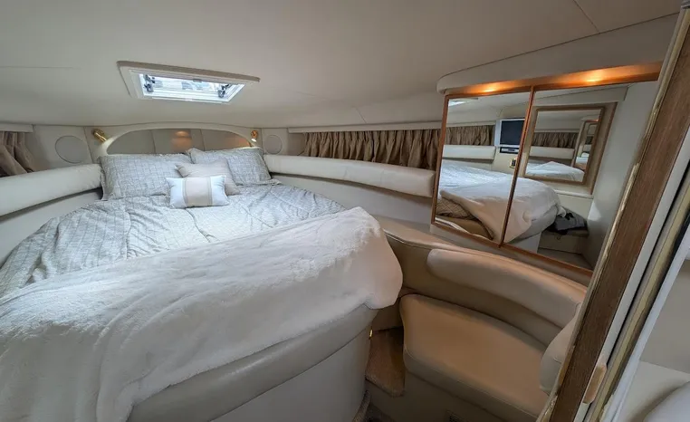 Take a look at this never salted, fresh water only 1998 Sea Ray 370 Sundancer, a stunning express cruiser that embodies elegance and performance. Powered by twin MerCruiser 454 MAG MP inboard engines, each delivering an impressive 380 horsepower, this boat is equipped for exhilarating cruising experiences. The electric windlass adds convenience, making anchoring a breeze. Accommodations include two comfortable cabins and a well-appointed head, providing ample space for relaxation and privacy. The thoughtful design and quality craftsmanship make this Sea Ray 370 Sundancer a perfect choice for both leisurely outings and adventurous voyages. This two owner boat has always been on Lake Michigan!