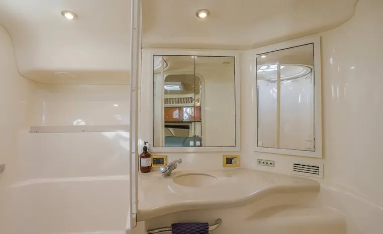 Excellent condition. Recent insurance survey used the word "Bristol" Repowered in 2016. Lift Kept by very meticulous owner. Selling to go newer. Twin 7.4 MPI Mercruiser V Drive.