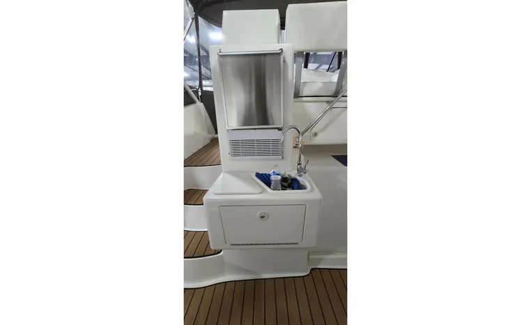 Freshwater / Great Lakes boat since new, this vessel features Twin Mercury 350 MAG MPI Gas Engines with only 638 original hours! Notable features include but are not limited to the following: Air-Conditioning & Heat (2-Zones), (2) Heads (Electric Flush) w/Vanity/Sink/Stall Showers, Kohler Generator (618-Hours), Windlass Anchor, Aft Deck Wet Bar w/Sink / Ice-Maker, Transom Shower, removable Bamboo flooring (Aft Deck / Fly-Bridge), Bow Thruster, and MUCH more!