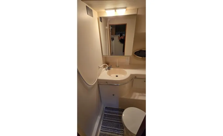 Freshwater / Great Lakes boat since new, this vessel features Twin Mercury 350 MAG MPI Gas Engines with only 638 original hours! Notable features include but are not limited to the following: Air-Conditioning & Heat (2-Zones), (2) Heads (Electric Flush) w/Vanity/Sink/Stall Showers, Kohler Generator (618-Hours), Windlass Anchor, Aft Deck Wet Bar w/Sink / Ice-Maker, Transom Shower, removable Bamboo flooring (Aft Deck / Fly-Bridge), Bow Thruster, and MUCH more!