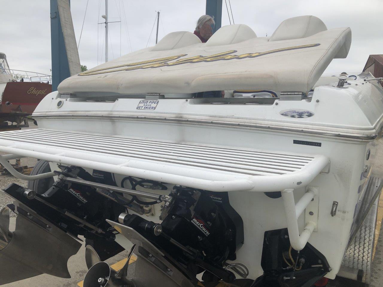 Don’t miss this clean, fast & freshwater Outlaw! She has been well-maintained and hoist-kept by her long-term owner. Other highlights include low-hour 700 HP V-8’s with Bravo / Imco shorty lowers, Lightning headers, Latham hydraulic steering, K-planes, newer Autometer gauges, custom engine cover / sunpad, full storage cover and triple-axle trailer. This is a terrific value for this much speed, style and fun on the water! Please click on Full Specs and inquire for more details…