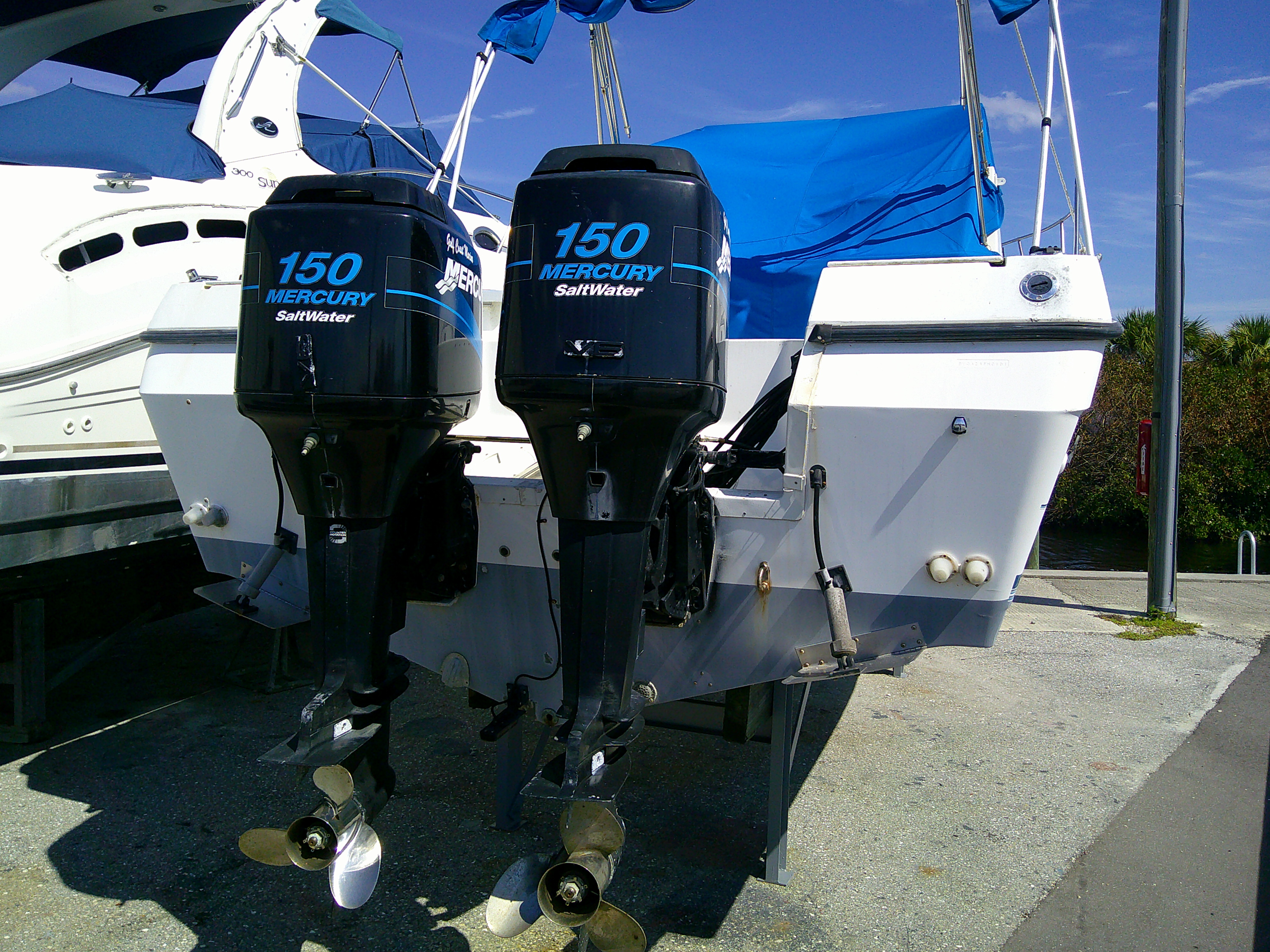 Port engine does not run. Starboard motor runs fine. Does not come with a trailer. Call and make an offer.