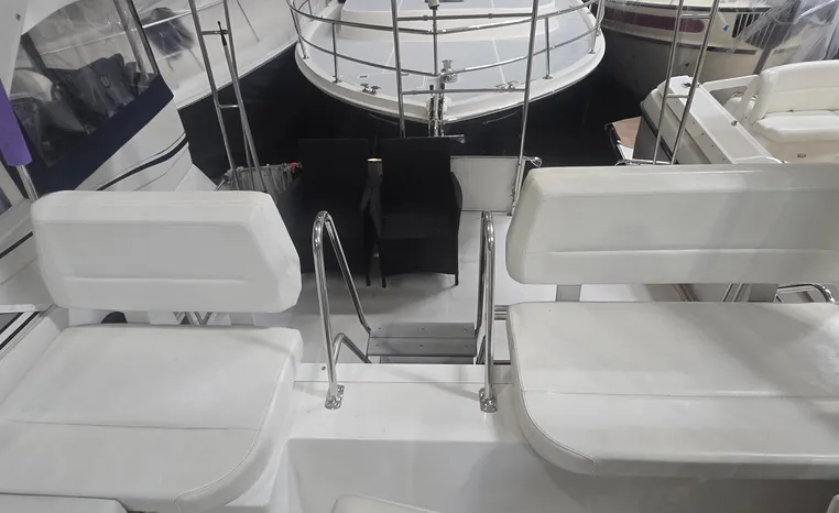 Freshwater/Great Lakes boat since new, this vessel features Twin MerCruiser 350 MAG Blue Water 300-hp Gas Engines with 1097 original hours. Notable features include but are not limited to the following: Air-Conditioning & Heat (1-Units), Head (Vacuflush) w/Vanity/Sink/Stall-Shower, Electronics Package (VHF Marine Radio, Garmin Chartplotter, Canvas Package (Bridge Enclosure & Aft Deck Enclosure), and MUCH more!