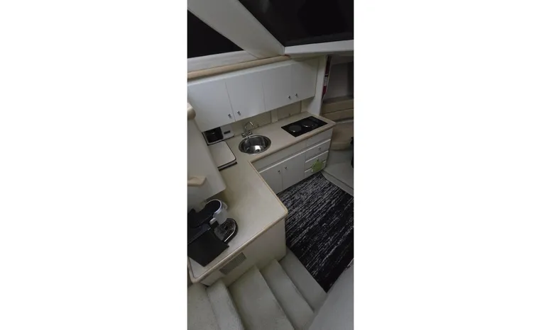Freshwater/Great Lakes boat since new, this vessel features Twin MerCruiser 350 MAG Blue Water 300-hp Gas Engines with 1097 original hours. Notable features include but are not limited to the following: Air-Conditioning & Heat (1-Units), Head (Vacuflush) w/Vanity/Sink/Stall-Shower, Electronics Package (VHF Marine Radio, Garmin Chartplotter, Canvas Package (Bridge Enclosure & Aft Deck Enclosure), and MUCH more!