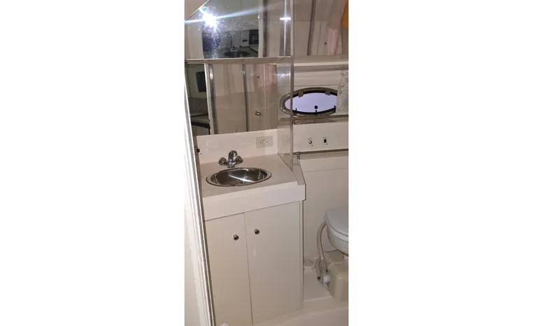 Freshwater/Great Lakes boat since new, this vessel features Twin MerCruiser 350 MAG Blue Water 300-hp Gas Engines with 1097 original hours. Notable features include but are not limited to the following: Air-Conditioning & Heat (1-Units), Head (Vacuflush) w/Vanity/Sink/Stall-Shower, Electronics Package (VHF Marine Radio, Garmin Chartplotter, Canvas Package (Bridge Enclosure & Aft Deck Enclosure), and MUCH more!