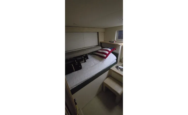 Freshwater/Great Lakes boat since new, this vessel features Twin MerCruiser 350 MAG Blue Water 300-hp Gas Engines with 1097 original hours. Notable features include but are not limited to the following: Air-Conditioning & Heat (1-Units), Head (Vacuflush) w/Vanity/Sink/Stall-Shower, Electronics Package (VHF Marine Radio, Garmin Chartplotter, Canvas Package (Bridge Enclosure & Aft Deck Enclosure), and MUCH more!