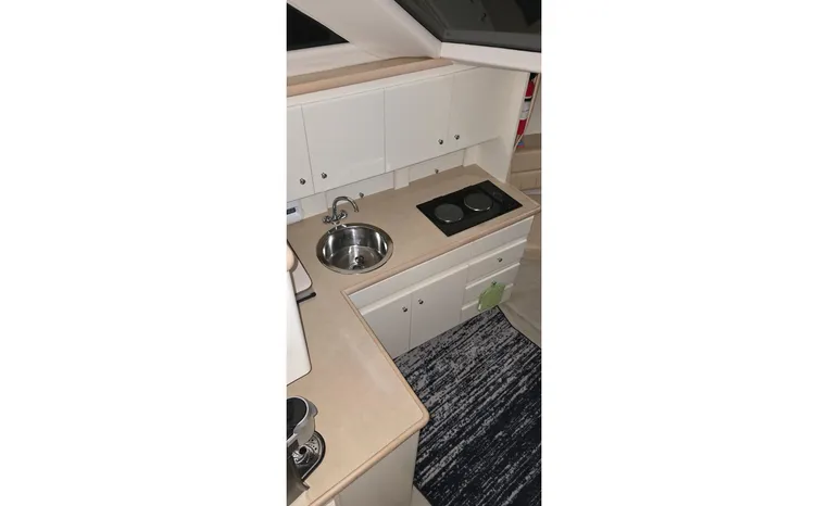 Freshwater/Great Lakes boat since new, this vessel features Twin MerCruiser 350 MAG Blue Water 300-hp Gas Engines with 1097 original hours. Notable features include but are not limited to the following: Air-Conditioning & Heat (1-Units), Head (Vacuflush) w/Vanity/Sink/Stall-Shower, Electronics Package (VHF Marine Radio, Garmin Chartplotter, Canvas Package (Bridge Enclosure & Aft Deck Enclosure), and MUCH more!