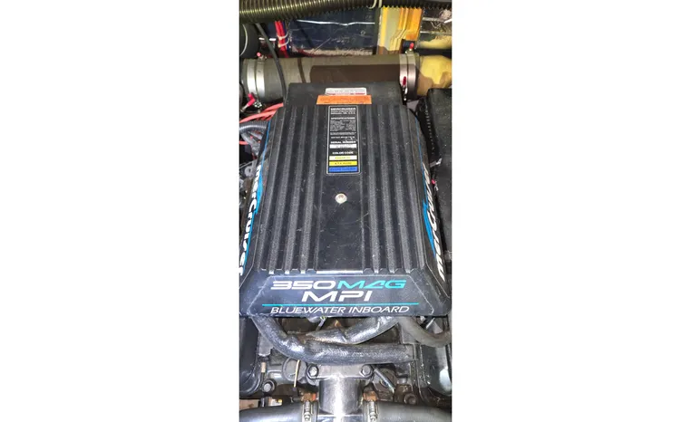 Freshwater/Great Lakes boat since new, this vessel features Twin MerCruiser 350 MAG Blue Water 300-hp Gas Engines with 1097 original hours. Notable features include but are not limited to the following: Air-Conditioning & Heat (1-Units), Head (Vacuflush) w/Vanity/Sink/Stall-Shower, Electronics Package (VHF Marine Radio, Garmin Chartplotter, Canvas Package (Bridge Enclosure & Aft Deck Enclosure), and MUCH more!
