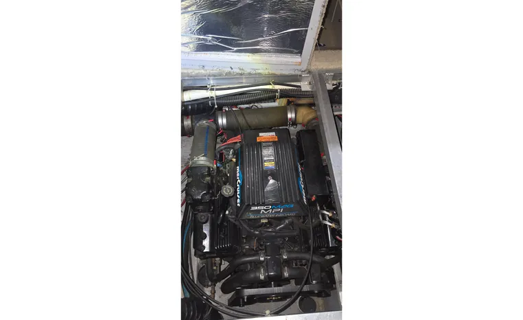 Freshwater/Great Lakes boat since new, this vessel features Twin MerCruiser 350 MAG Blue Water 300-hp Gas Engines with 1097 original hours. Notable features include but are not limited to the following: Air-Conditioning & Heat (1-Units), Head (Vacuflush) w/Vanity/Sink/Stall-Shower, Electronics Package (VHF Marine Radio, Garmin Chartplotter, Canvas Package (Bridge Enclosure & Aft Deck Enclosure), and MUCH more!