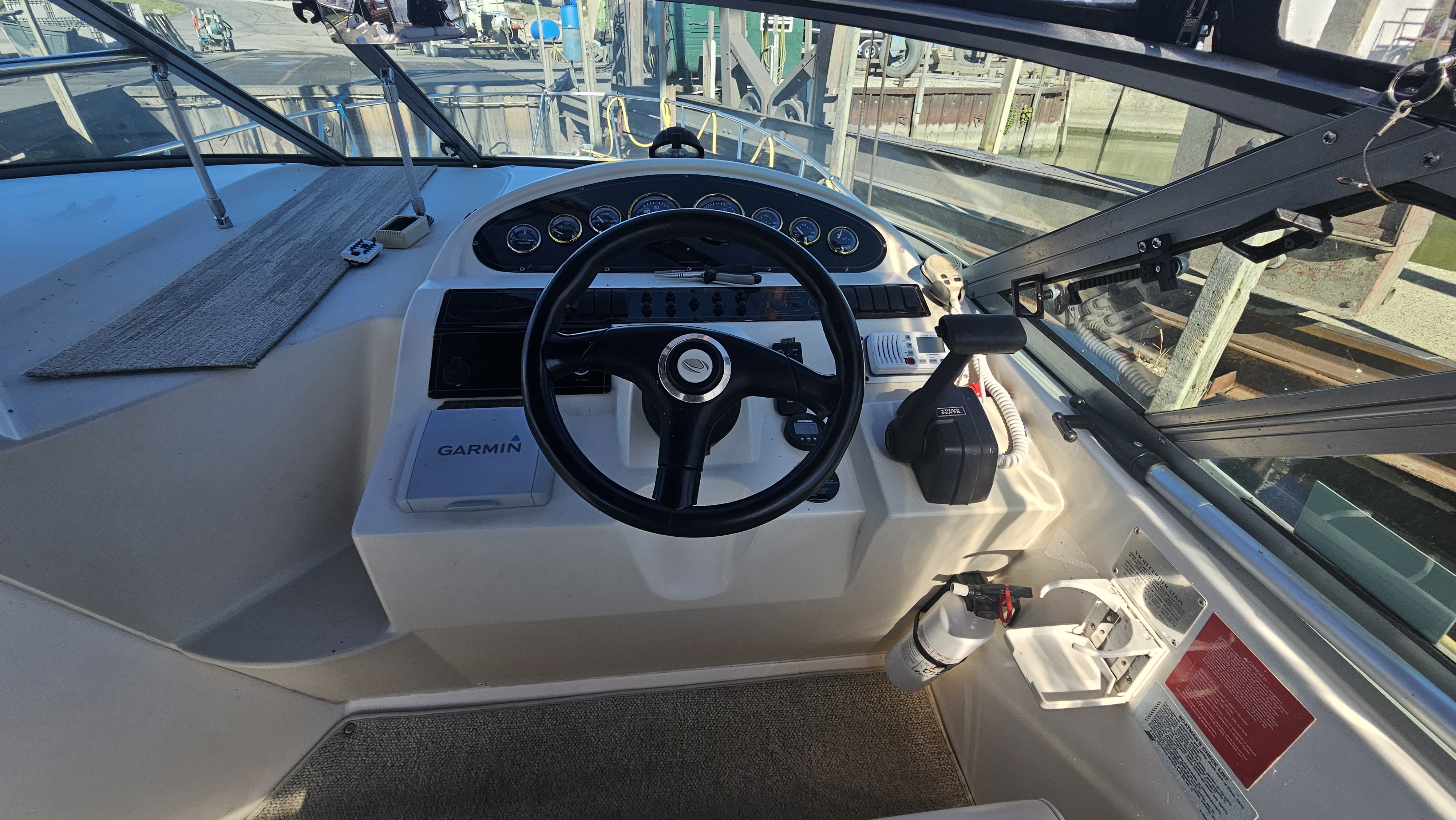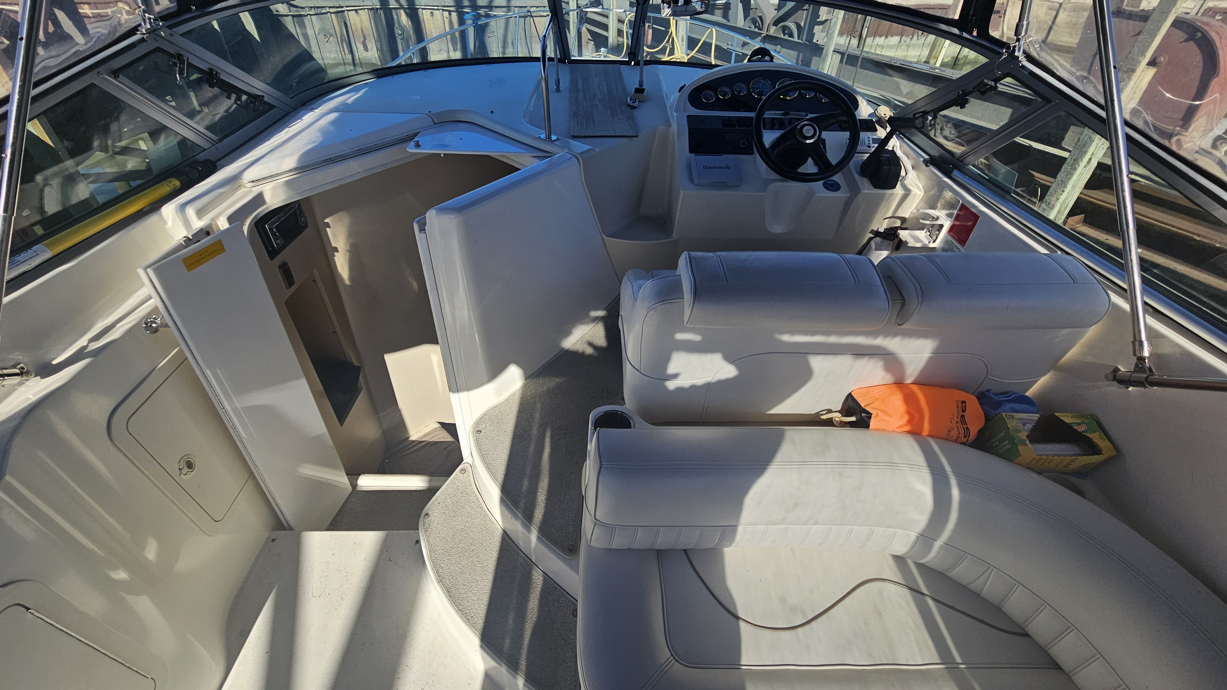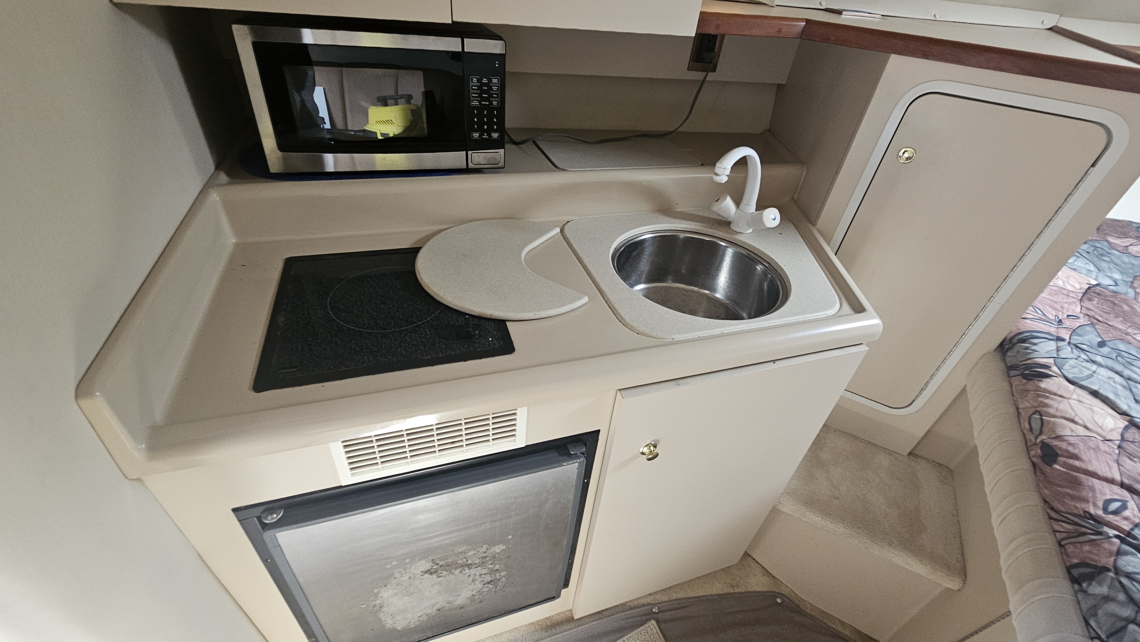 The Cruisers 2870 Rogue offers luxury performance in an affordable package.This yacht is ergonomically designed to provide space as well as features. The 2870 Rogue ensures ease of movement forward with a center windshield walk-through, and an optional cockpit sun lounge with table is available for summer afternoon anchorages. The below deck living space features an open layout including a crescent-shaped convertible dinette, large midcabin and a spacious forward double berth. A full-service galley to port features a large refrigerator and electric stove. The