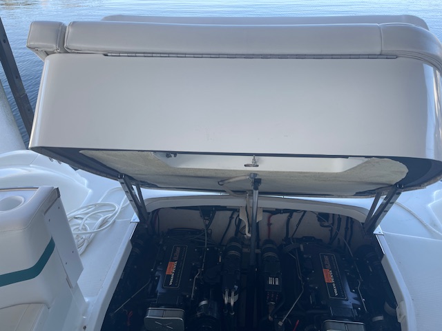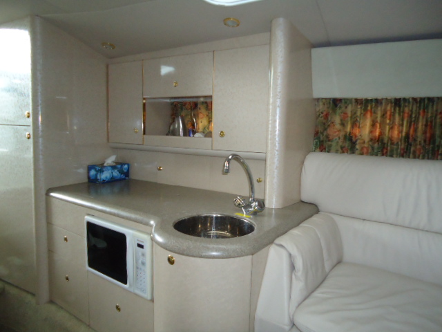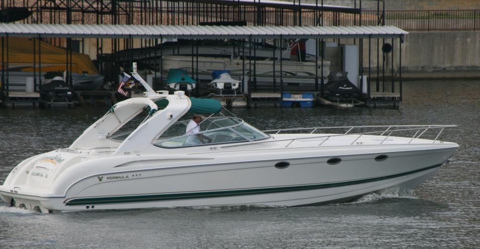 1999 Formula 400 Super Sport powered by twin Volvo Penta 8.2 502s and Volvo Penta drives with 600 hours, Kohler 6.5 kw generator, cabin AC and heat, swim platform with a 4-step swim ladder, cockpit sunpad, aft storage locker, Kenwood stereo with RF remote, 10-inch subwoofer, cockpit sink, cockpit refrigerator, remote spotlight, Livorsi throttle and shift levers, Garman depth sounder, airhorn, TV, cabin sink, cabin refrigerator, microwave, bow cabin tables that fold into bed, built in trash receptacle, head with shower, large bed in master stateroom.
