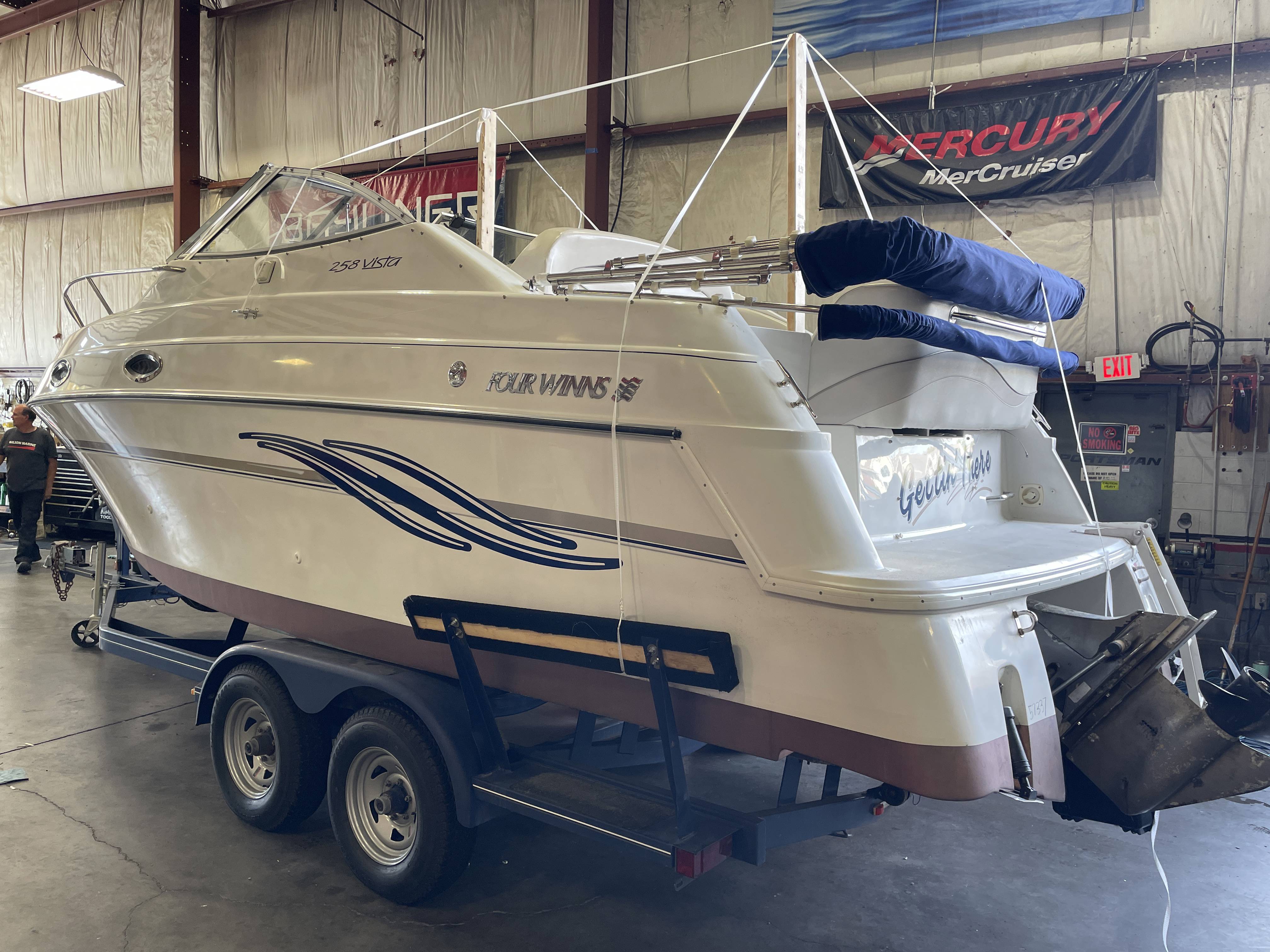 1999 Four Winns 258 Vista with Volvo Penta 5.7L and tandem axle trailerBoat is in great shape with only 440 hours! Brand new bottom paint by Wilson Marine!Boat options include:*Cockpit cover*Head with pump out*Convertible V-Berth bed*Small 2nd bed*Electric cooktop*Microwave*Bimini top*Compass*Rear swim ladder*Flip-flop driver's seat for U-shape cockpit seating-No heat, air or generatorCall 800-875-2620 for additional information or to schedule an appointment to view the boat today!